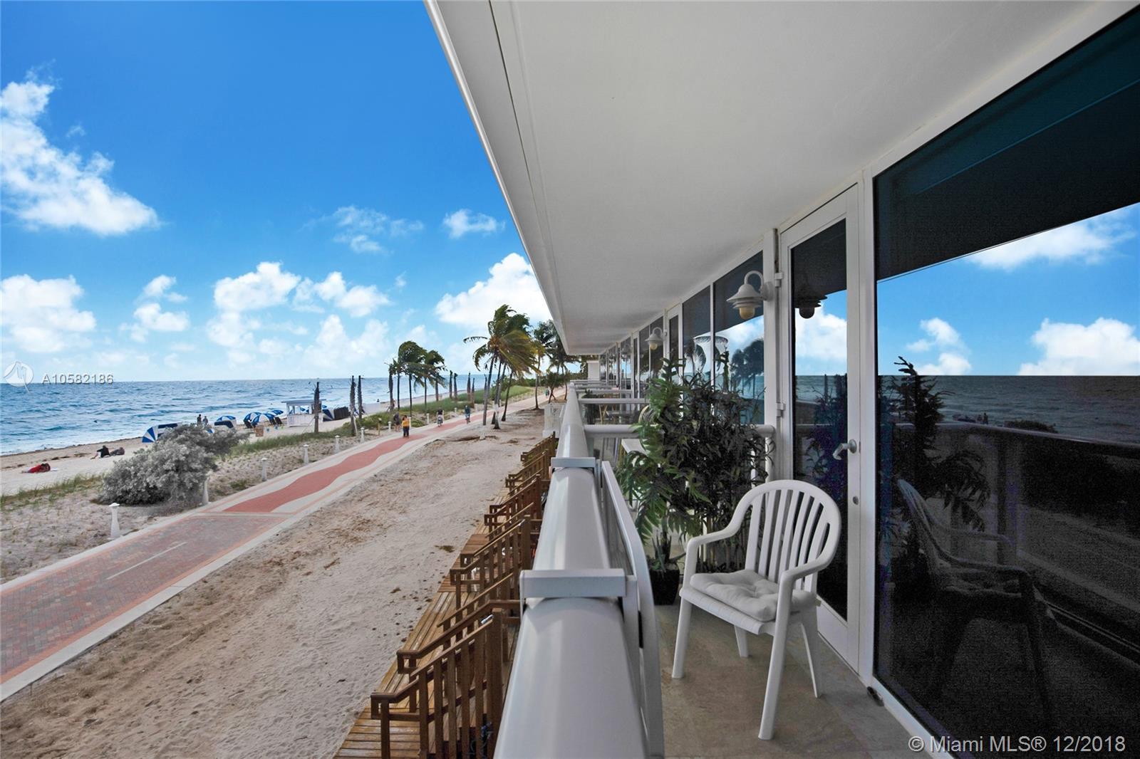 Live on the beach. This is an opportunity to own a "beach home" directly facing the ocean. This rare find is one of only seven unique townhomes in this complex. This townhouse has three terraces, one facing the pool and two facing the ocean. The seller says this two bedroom, two and half bathroom has 1,040 sqft of living area and was recently remodeled. Electric, basic cable, wi-fi and water are all included in the modest $464 monthly maintenance fee. Amenities include: mini-market in building, restaurant in lobby, Tiki bar/restaurant in pool area, gym, Olympic size pool, Russian Baths in building and valet parking.