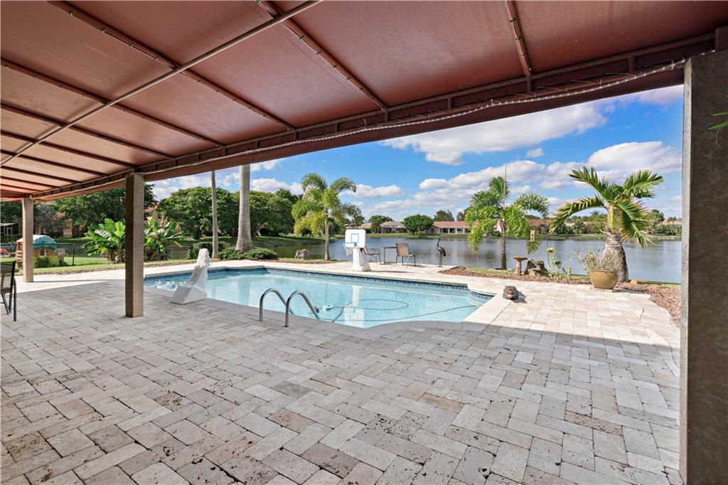 Largest lot in Cypress Run! Rare 2-story, 4-BR, pool home on lake. Major improvements incl a newer Key West-style metal roof, 2-zone A/C, impact glass windows & doors, diamond-brite pool. Remodeled EIK w/SS, lrg center island w/cook top, range hood, wine fridge, granite & butler’s pantry! Interior offers a formal DR, LR w/exposed wood volume ceiling, reading rm w/wood-burning fireplace, family rm; extra storage rm; ½ bath 1st fl; sep laundry rm. Tile, carpet; hardwood bamboo in spacious Master w/sliders to terrace for amazing wide-water views; volume ceilings, WICs. 3 lrg BRs, dual sink 2nd bath. Plantation Shutters, flat screen in EIK & all blinds stay! HUGE backyard w/pool, true cabana bath, outdoor shower, covered barbeque area, fire pit, fruit trees, tons of green space & more. NO HOA!