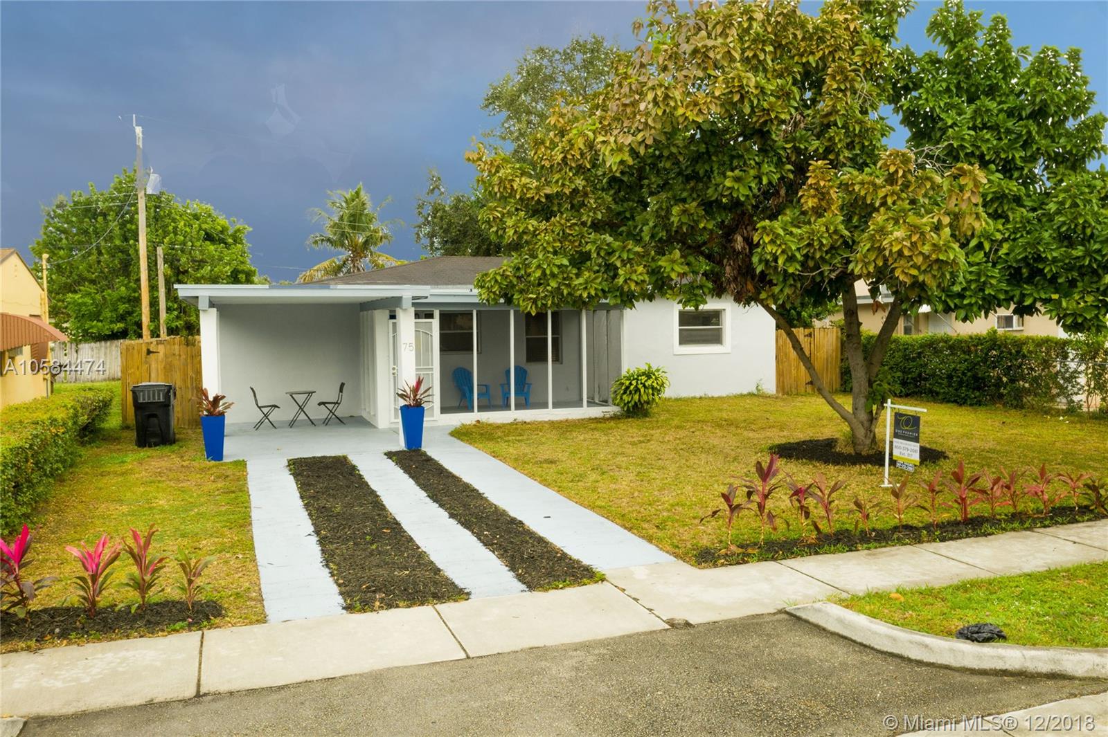 Beautiful 2/1 home totally renovated and updated kitchen with brand new stainless steel appliances, backsplash, breakfast bar, new washer & dryer, 2 mini split AC units, new bathroom, ceiling fans, carport with extra parking, screened in porch, large fenced backyard, new lighting. Close to I-95 and walk to Starbucks. Extra large living room can be converted to a 3/1 as shown on tax roll.