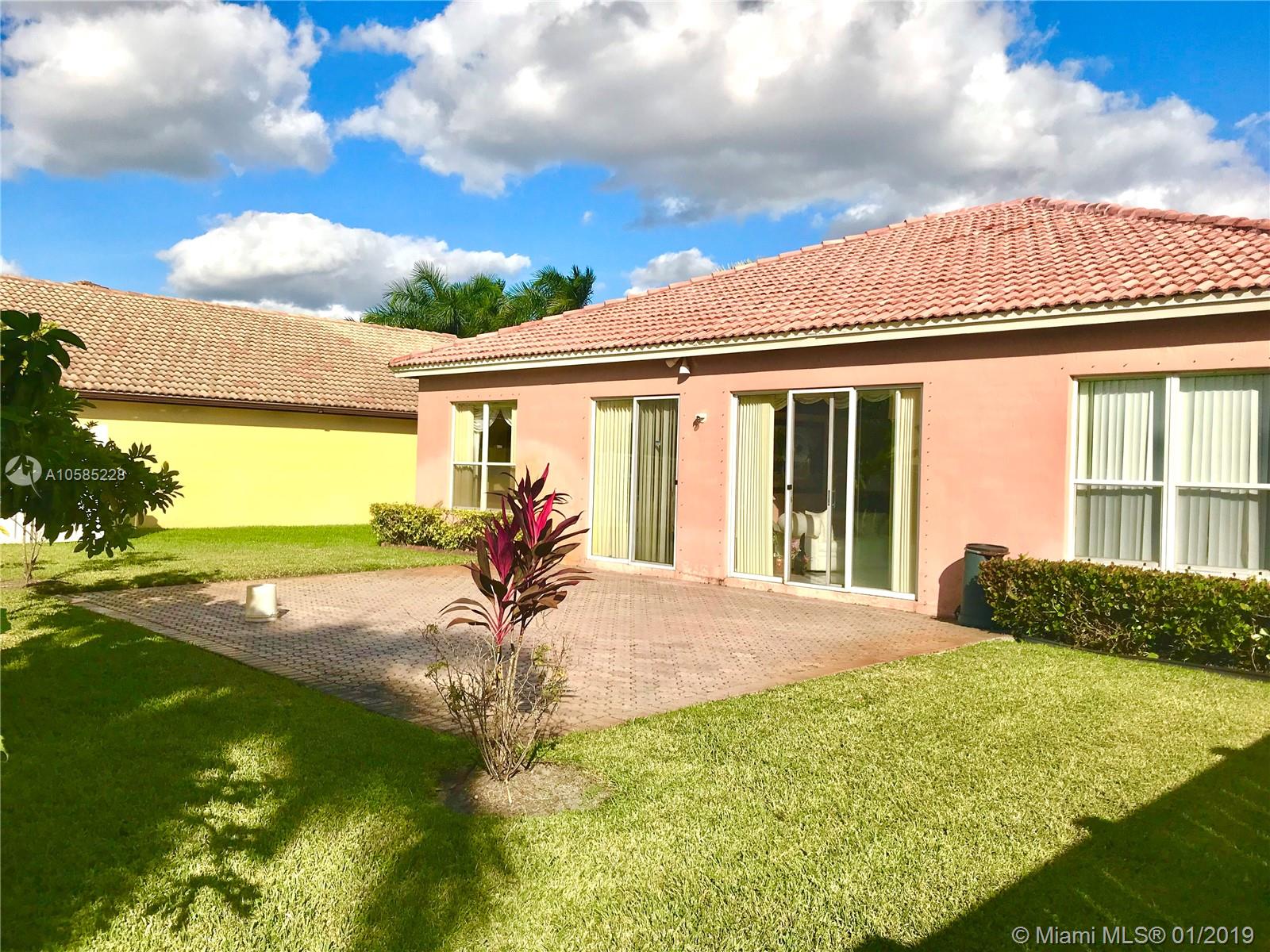 Rarely available 4 bedroom 2 bath in Windsor Palms! Beautiful Split floor plan. High ceilings in master bedroom, eat in kitchen, with island, dedicated dining area, huge backyard and patio area. Enough room to put in a POOL! Brick pavers in front porch and driveway, also in patio. Very well manicured property. 2 car garage and dedicated laundry room. Ready to move in and add your finishing touches! Secured Guard gate for added security and with low association fees. A very quiet and peaceful community. Se habla espanol tambien! Call today for a showing appointment.