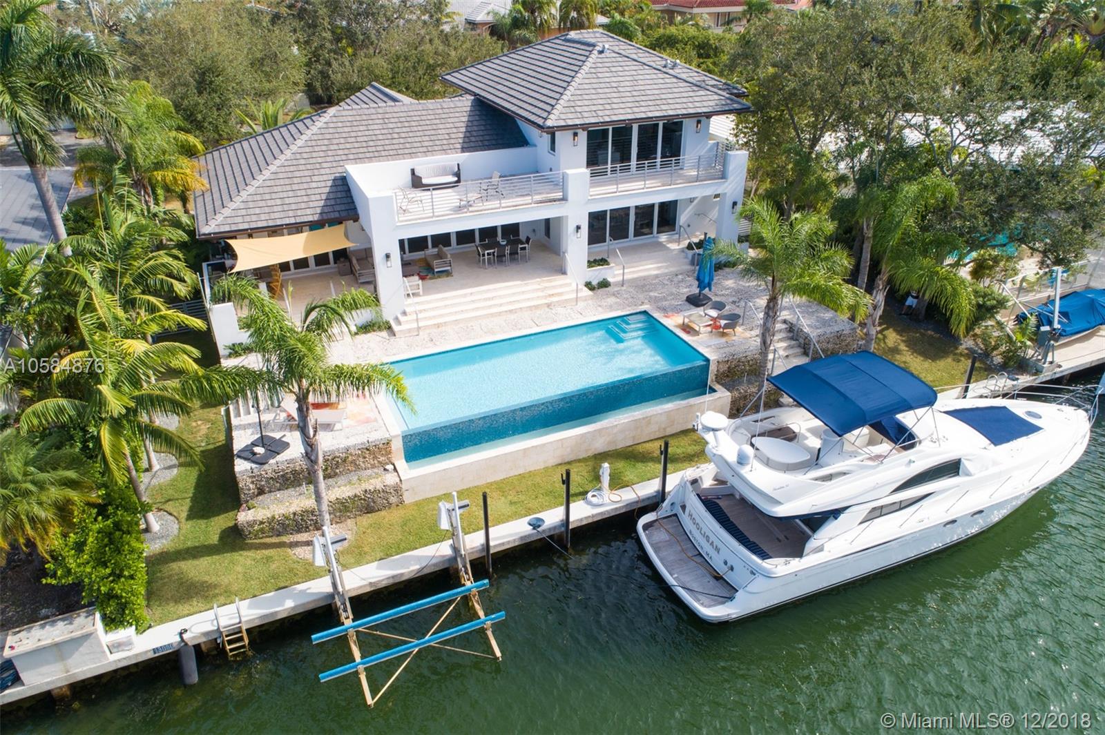 Contemporary Waterfront, No Bridges, 2 Story home built by CAD Studio. Cathedral Ceiling welcomes you to stunning great room featuring Impact glass windows & doors that offer indoor/outdoor living and view of summer kitchen, infinity pool & waterway. Priv Dock w/100' of wf and Lift. Modern finishes including Lutron lighting system, state of the art kitchen with Thermador SS appliances, Swann 4K security system and cutting edge upgrades. Private upstairs opulent master suite w/water views and private sun deck, 2 closets & spa like bath. 3 bedrooms on ground level, and 3.5 baths. Wet bar with wine cooler and ice maker. Mature Oaks, Marble Driveway, Water feature entrance, Downstairs 2 car garage w/bonus storage.