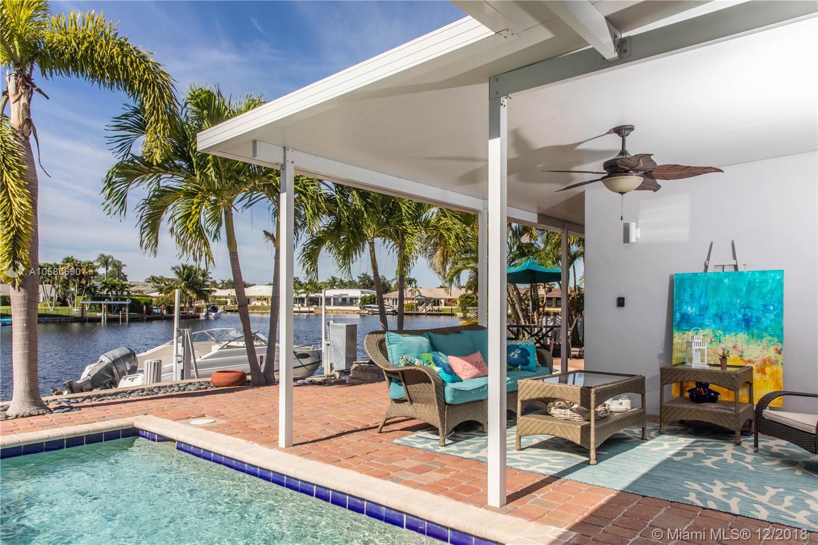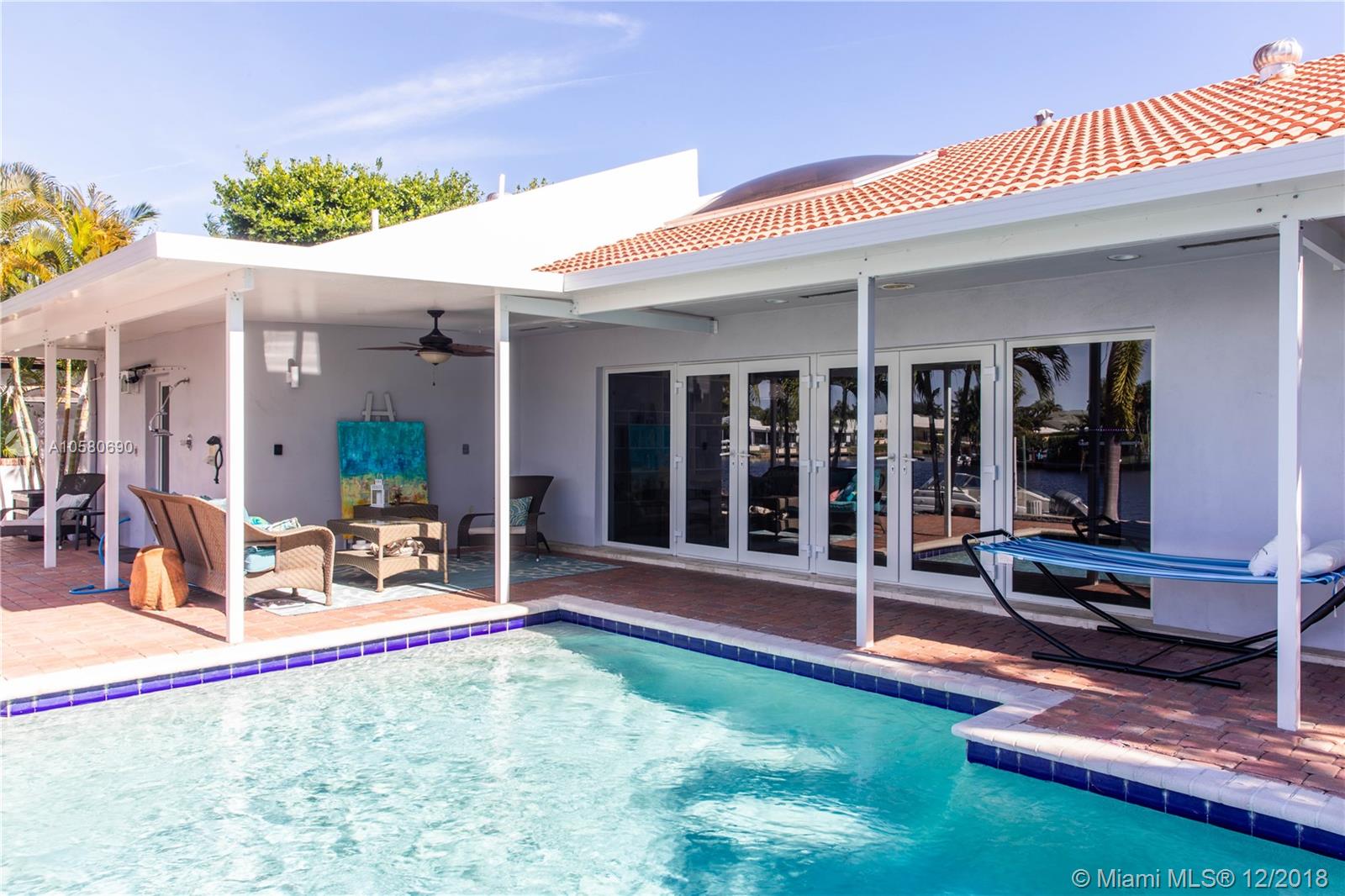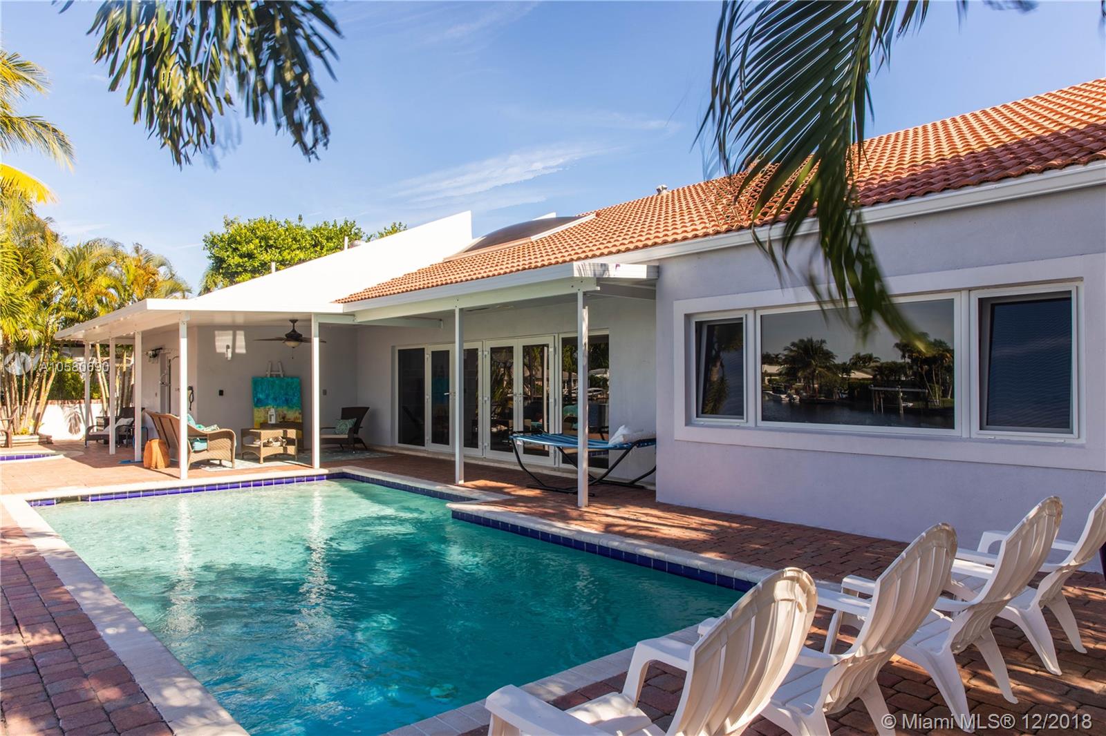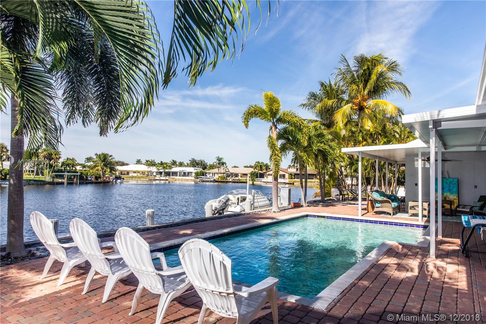 Beautiful 4 bedroom and 3 ½ baths plus den located in highly desirable Carriage Hill neighborhood. Property has been nicely upgraded with marble, wood flooring, newer kitchen and 20 FT floor to ceiling impact glass windows. Property boasts extra-large living areas, 18' vaulted ceilings and 12 FT window with beautiful water views. Home has 80' water frontage with a 50 FT dock and a 15,000 LB boat Lift. Enjoy the pool deck overlooking the water, and watch the manatees come stop for a visit. A+ rated schools, and just 1.5 miles to the beach.