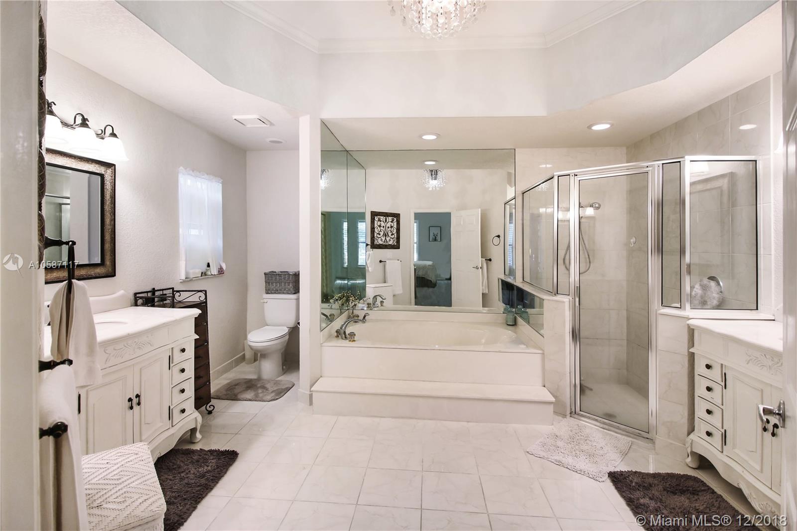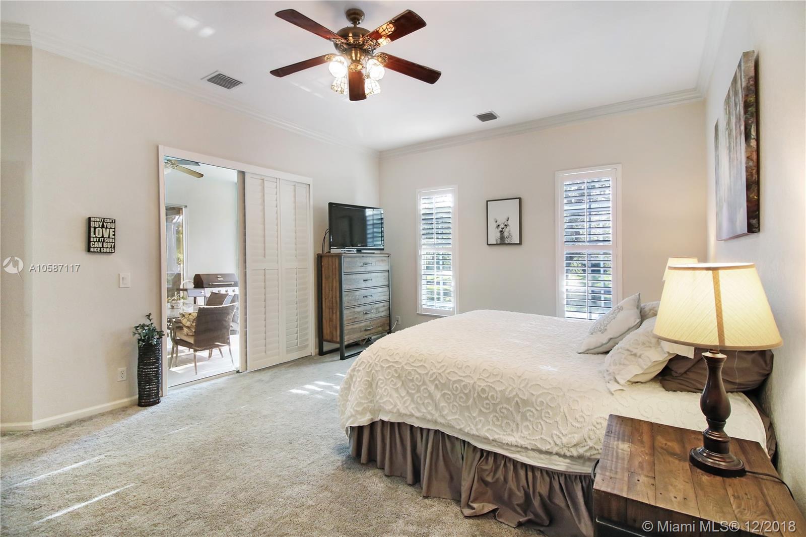 Beautiful sunny home in exclusive gated Eagle Trace community. New roof 2017, new AC 2018, new oven range & microwave 2018, hurricane protection on every window & door. Situated on sought after Highland Place w/ no thru traffic, this waterfront home features a screened pool area & covered patio w/ access points from the kitchen, living room & master bedroom, making it an entertainer's dream! Master bedroom is absolutely massive w/ space for a king bed and full furniture arrangement including sitting area plus 2 walk-in closets; huge master bathroom has double vanities on opposite walls, oversized jetted tub and separate shower. 2nd and 3rd bedrooms have jack & jill bath plus walk-in closets in both. Laundry room has abundant storage. 60 second drive to Publix, 3 mins to the Sawgrass!