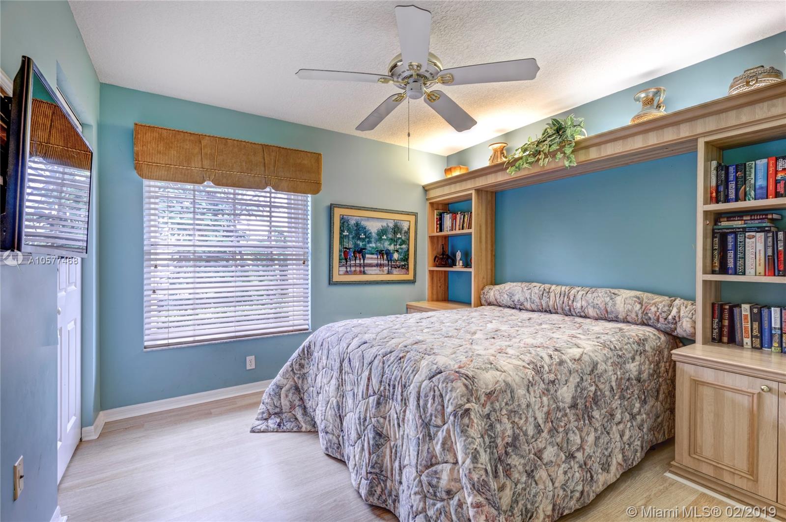 Spacious waterfront home in the desirable community of Grand Palms. Located in West Pembroke Pines. NEW ROOF. new laminated wood flooring in bedrooms, large open kitchen, bar top seating into family room. 2 Bedrooms, 2 Master walk in closets, 3rd room was converted to an open den area/dining, can easily convert back to 3rd bedroom. Vaulted ceilings, open living room area. Two car garage. Located close to I-75, Pembroke Gardens, Whole foods, Costco and much more. First class community amenities include complete lawn care, cable, alarm monitoring, exterior painting, roof pressure cleaning, guarded security gate & more! Close to excellent schools!