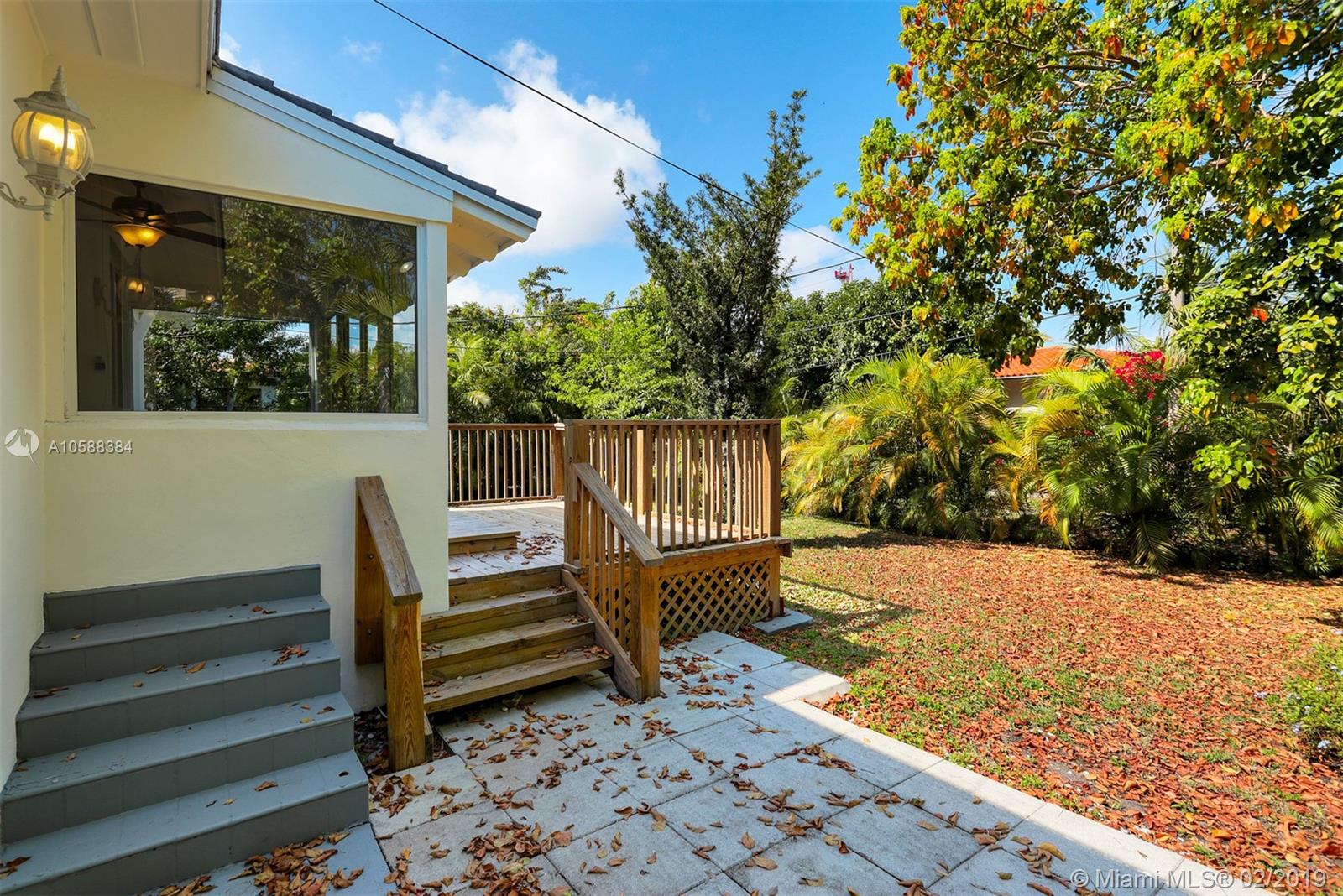 Home located in City Beautiful, Coral Gables. Two bedrooms, one bath with nice size yard with room for pool. Home has brand new flat tile roof, impact windows and doors, original oak wood floors in excellent condition, kitchen and bath remodeled a few years ago, freshly painted inside & out, gas waster heater, one car garage, washer & dryer, nice size wood deck to enjoy your morning coffee. Few step to Miracle Mile restaurants and shops and Coral Gables Hospital. Minutes to Village of Merrick Park, Coconut Grove, University of Miami, and 15 minutes to beach. Live in the center of top world class arts and entertainment Miami has to offer. Easy to show. Move in ready. Lowest priced remodeled home in Gables!