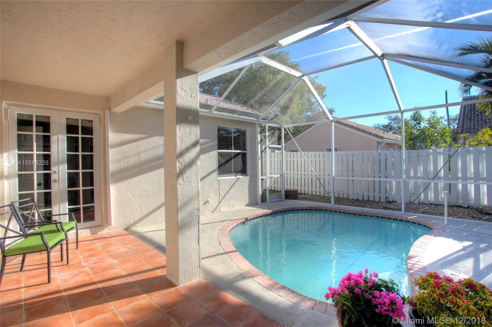 R.A.R.E find - Immaculate 3 bedroom 2 baths POOL home in The Falls gated community boasts beaming wood laminate floors throughout (tiles in bathrooms/laundry). The chef's kitchen features upgraded elegant wood cabinets, granite countertops & newer stainless steel appliances. Beautiful french doors opens up to a relaxing private pool area with screened in patio perfect for Al Fresco dining & relaxation! Sprinkler system. Hurricane Panels. Freshly painted. Steps away from the ultimate recreational facilities - community pool, basketball court, large green field, volleyball court and walking paths. Location is highly desirable with proximity to I75, grocery stores, coffee shop, restaurants, gas station, banks. Walking distance to Eagle Point Elem. & biking distance to Tequesta Trace Middle.