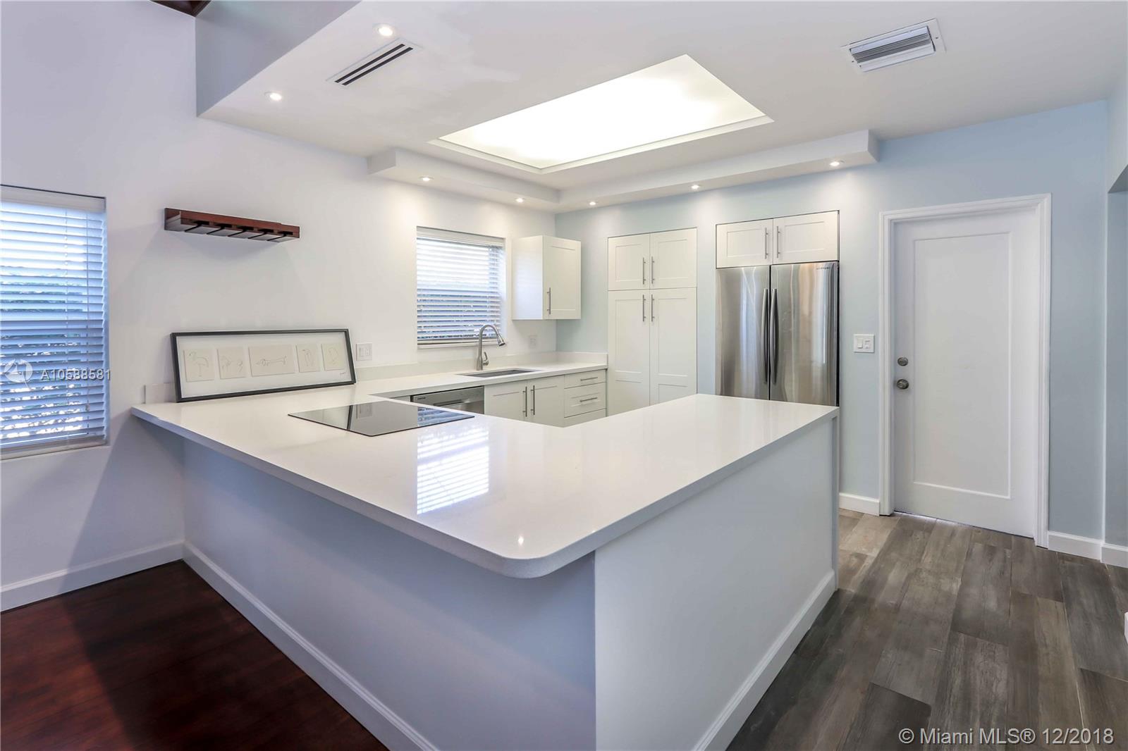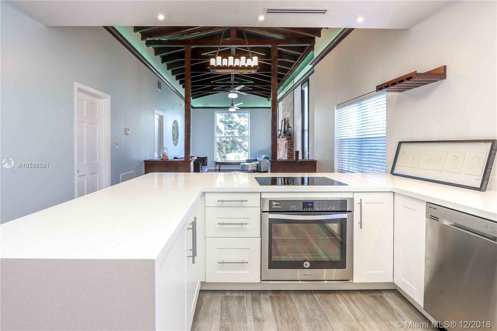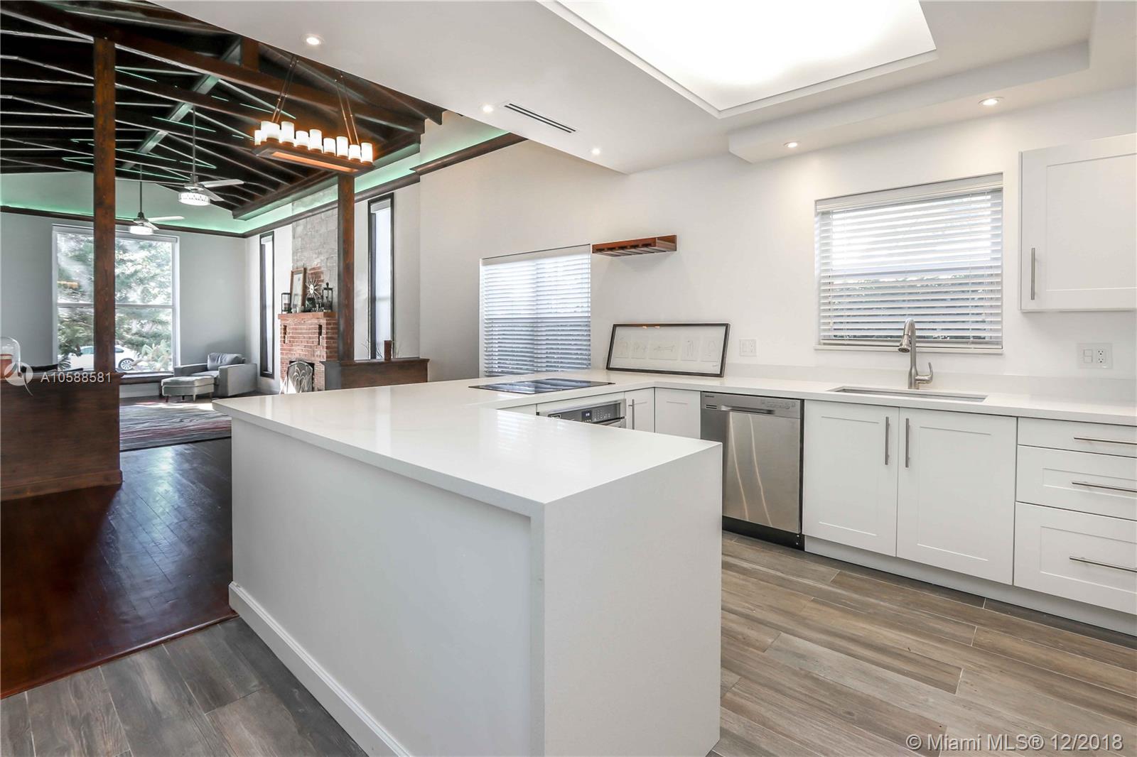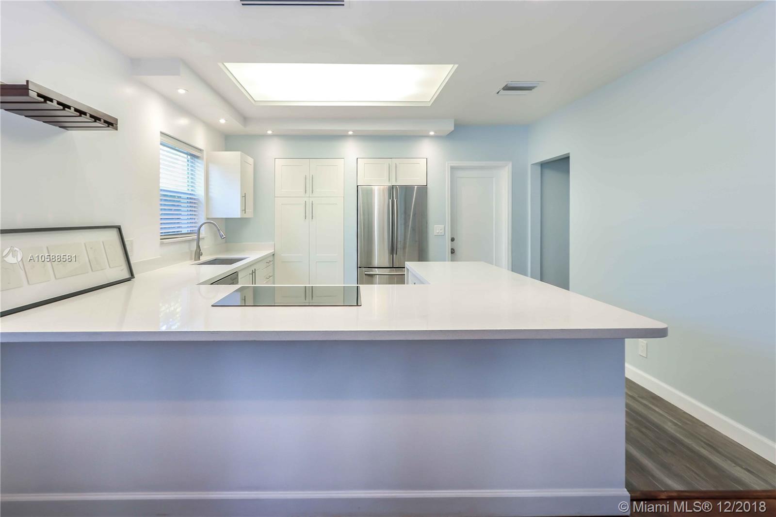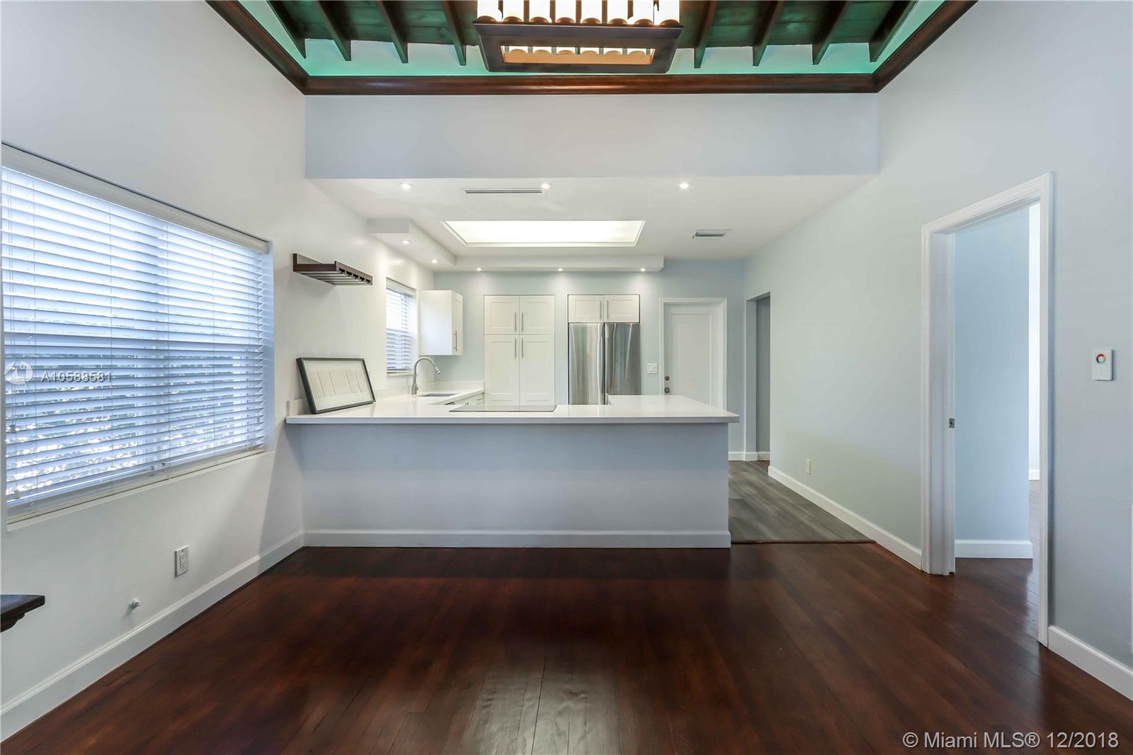 Beautiful Home East of US 1 ~ Vaulted Ceilings with Exposed Wood Beams and Crown Molding ~ Beautiful Wood Floors ~ 3 Bedrooms / 2 Bathrooms Plus an Extra Room ~ Freshly Painted ~ Open Kitchen, Seating Area, Quartz Countertops, White Cabinets and Stainless Steel Appliances ~ Kitchen Pull Outs ~ Formal Dining Room ~ Updated Guest Bath ~ Master Bedroom has Private Patio Outside of Bedroom ~ Room for a Pool on Very Double Lot with Mango Trees ~ Great Curb Appeal ~ Move In Ready! Close to Downtown Hollywood, Hollywood Beach, Gulfstream, Aventura, Ft Lauderdale/Hollywood International Airport. A/C is Approximately 2015 ~ Roof is Approximately 2013 ~ Newer Tankless Water heater ~ Detached Structure in the back is used as a laundry room