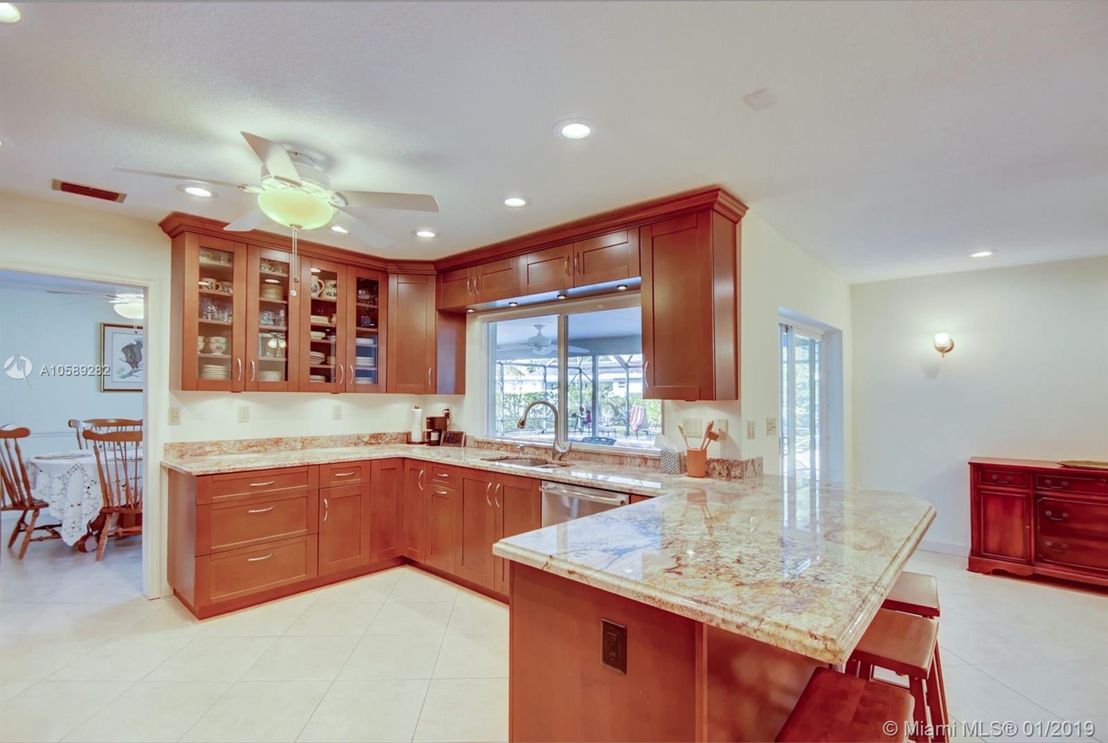 Beautifully updated pool home in gated community, well appointed w/modern touches. Gorgeous kitchen w/custom wood cabinetry, gas stove, granite counters, SS appliances & pool view. Stunning remodeled baths, enlarged master w/agate & marble, modern vanity, new fixtures, closet cabinetry. Guest bath offers jacuzzi tub, custom cabinets & vanity, new tile. Tile living areas, large family room, crown moulding, impact windows & sliders, freshly painted, knockdown ceilings, LED lighting, large laundry room. Pretty paver drive, side entry garage w/storm grade door, large 8x10 shed & RV pad. Enjoy the screened patio/pool area w/large overhang and gorgeous backyard w/lush landscaping. This smartly designed, inviting home is well cared for, nicely updated, and in amazing condition – welcome home.