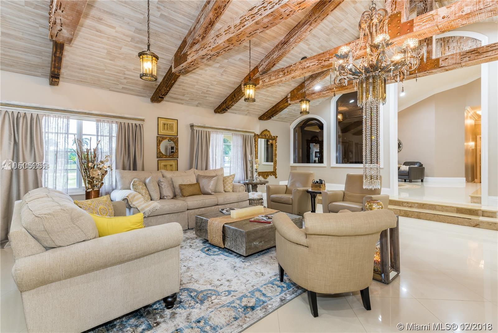 Inspired by the glorious chateaus of France, this one of a kind home is a sophisticated and luxurious retreat that reflects that magical merging of inspiration and architecture. From the moment you arrive, you will be enveloped by a sense of familial warmth. The living areas are appointed with neutral tile floors, volume ceilings, wood-like beams, a working fireplace, intricate woodwork, chandeliers with an updated eat-in chef's kitchen which overlooks the lanai, pool and grounds. A beautiful master suite with plenty of sitting room and large en-suite is sure to please. The property features an in-law/caretaker cottage in rear, an additional standalone guest suite with additional storage space and a modern car lover’s dream garage with wall to wall storage. *sq ft as per sellers appraisal