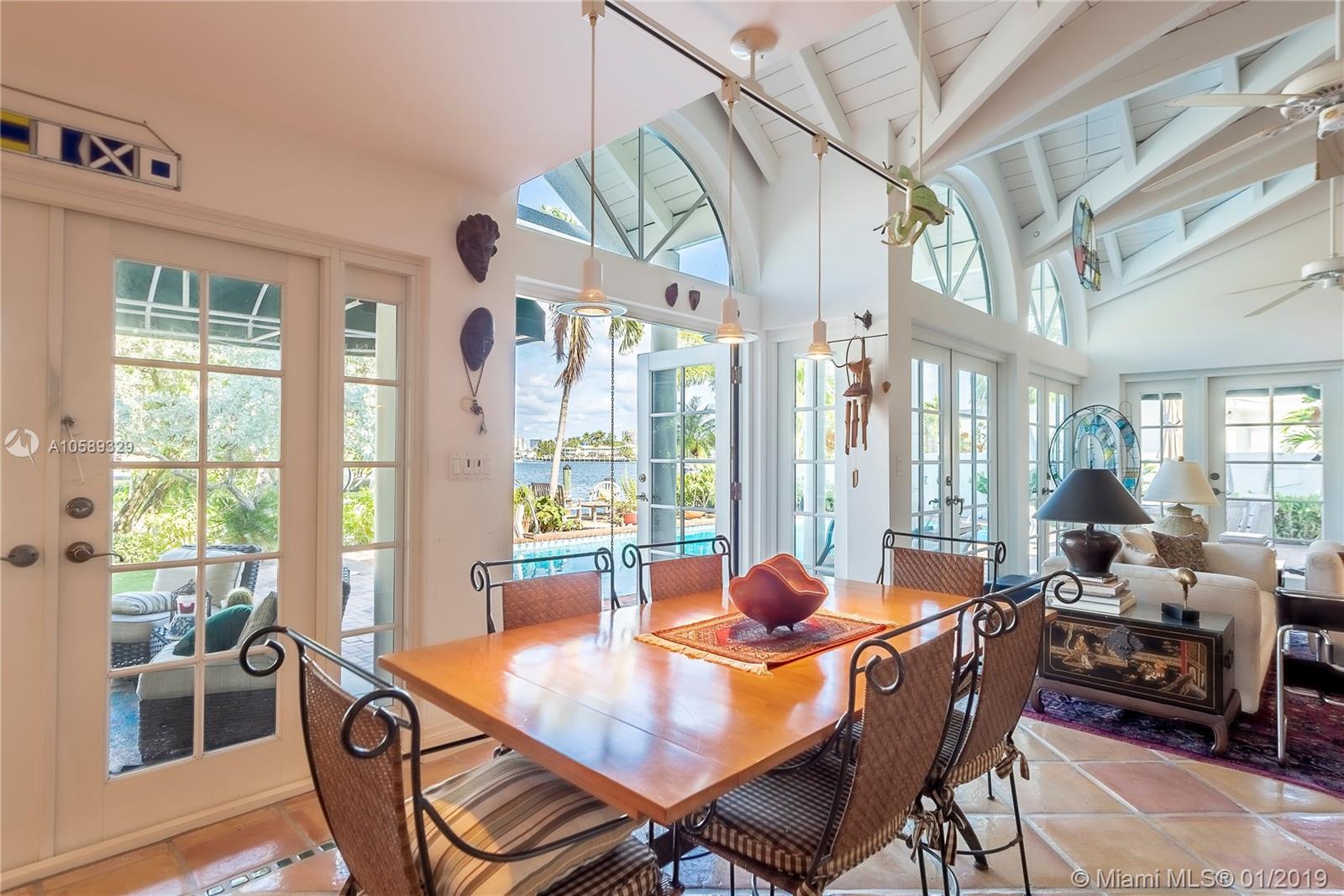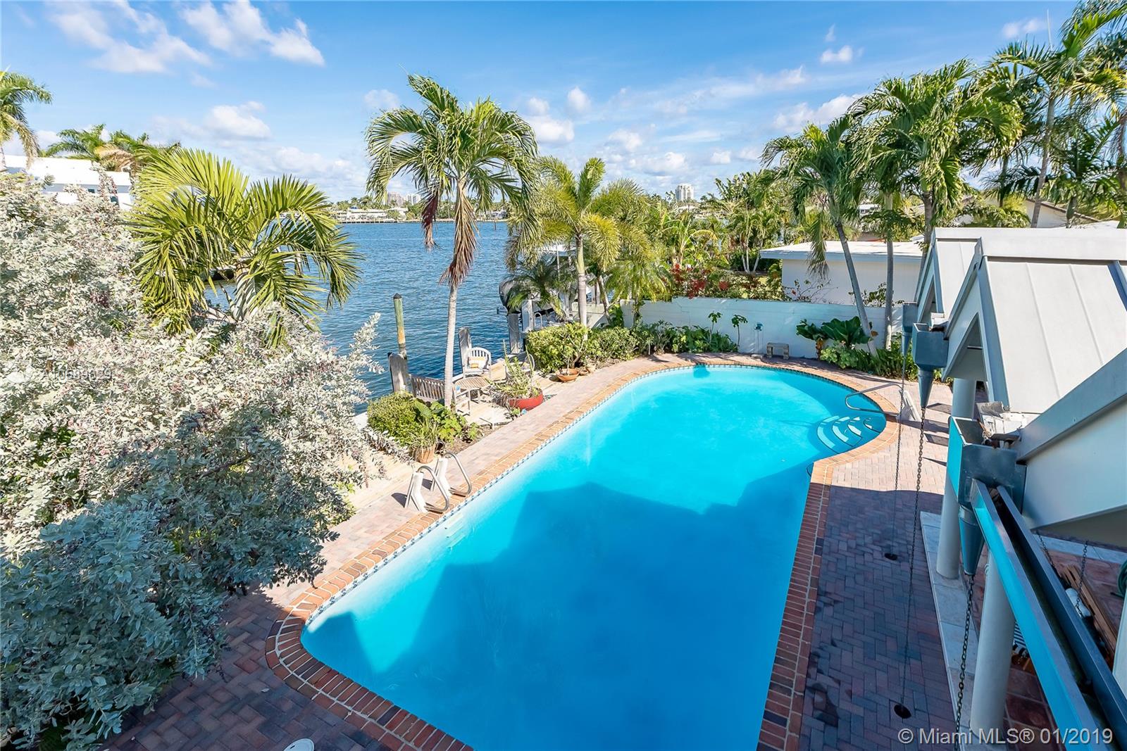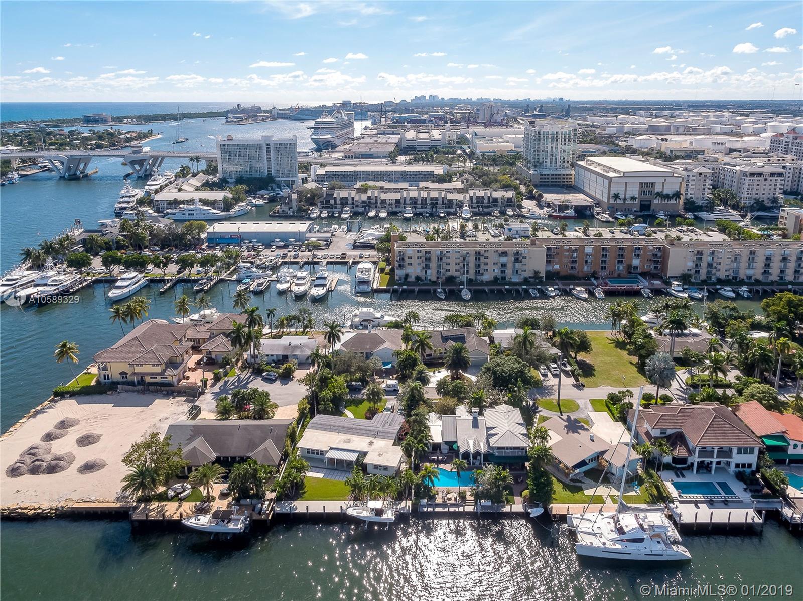 Ft. Lauderdale, 80' waterfront property in Lauderdale Harbor on a wide & deep canal less than 1 mile from open ocean access. It boasts a wide open floor plan, water views from almost every room, dock with two 50 amp power for up to 70' yacht, kitchen with island, living areas with impressive high vaulted ceilings, a fireplace, dining room, extra office and library. An open staircase leads to your master suite complete with his and hers walk-in closets, additional sitting area and a private waterfront terrace with stunning water views towards the Intracoastal. A ground floor bedR is currently used as 2nd office with french doors leading to the pool area, 3rd bedR has access to private & tropical courtyard. Other features are waterfront pool, impact windows, large utility room & art studio.