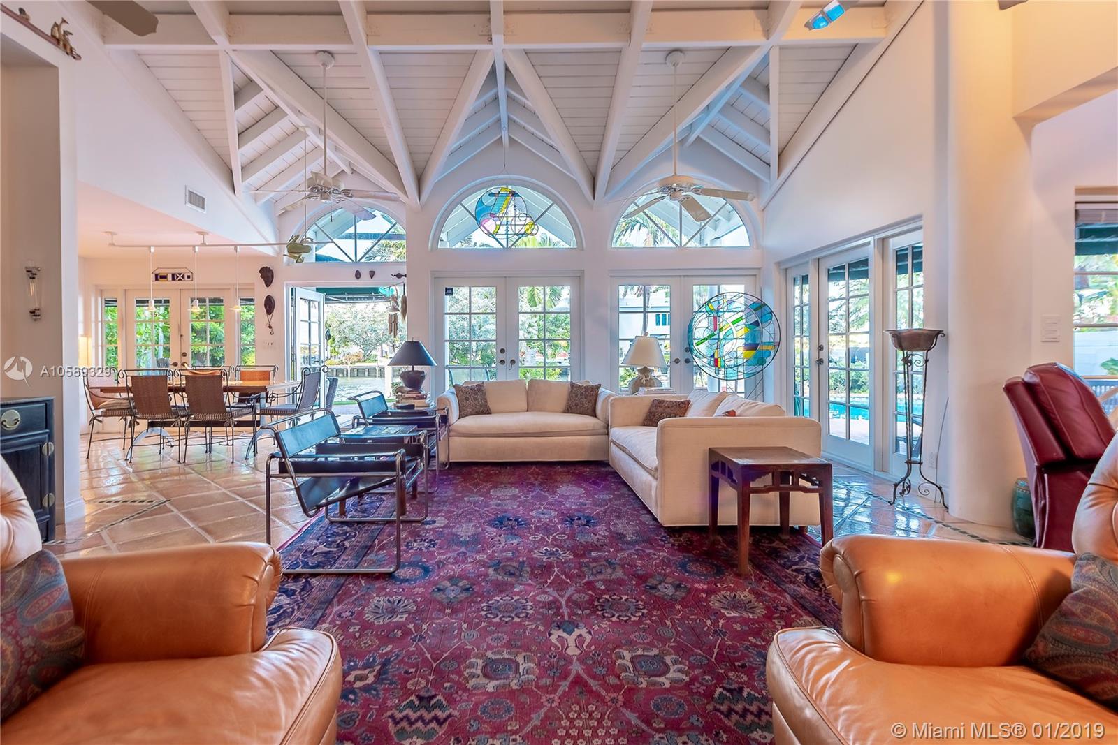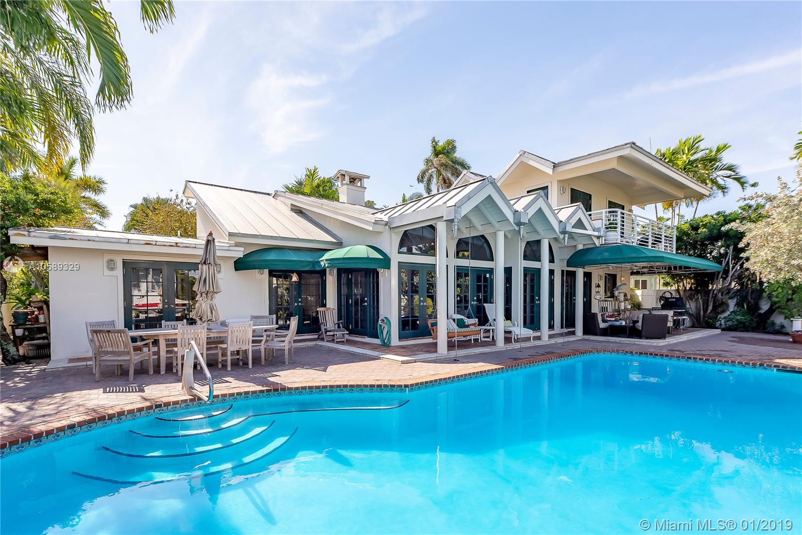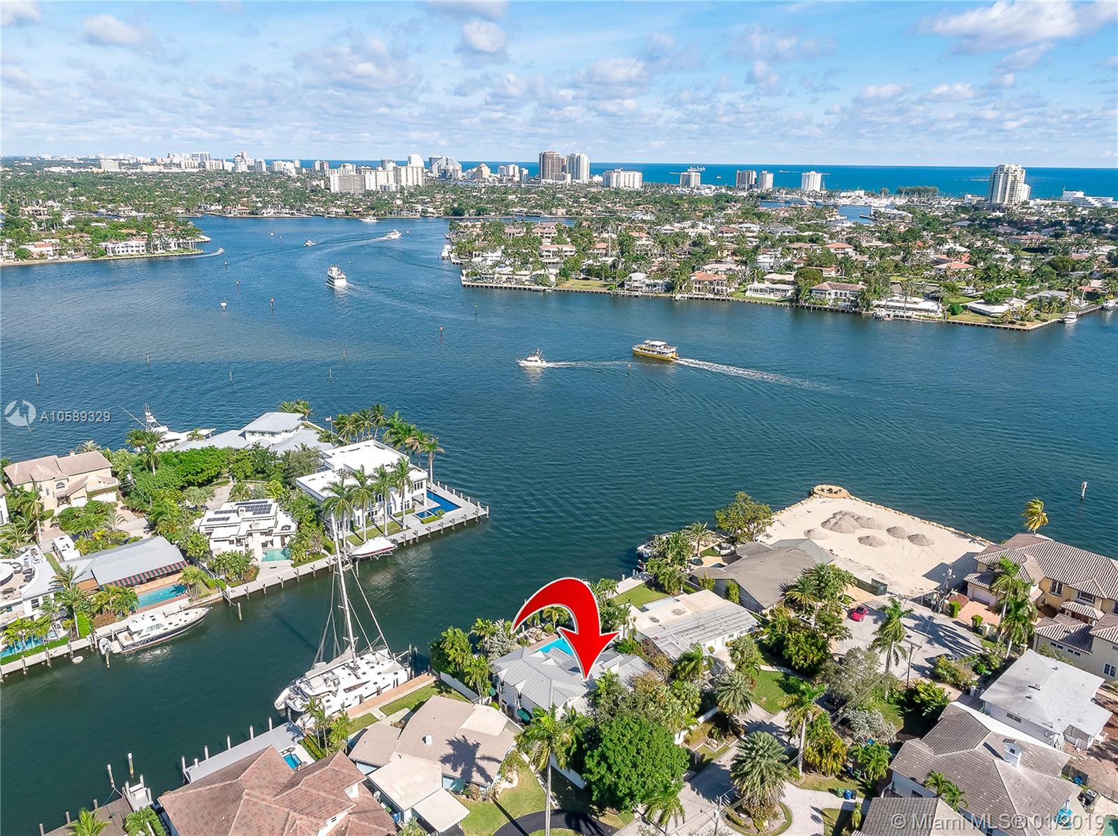 Ft. Lauderdale, 80' waterfront property in Lauderdale Harbor on a wide & deep canal less than 1 mile from open ocean access. It boasts a wide open floor plan, water views from almost every room, dock with two 50 amp power for up to 70' yacht, kitchen with island, living areas with impressive high vaulted ceilings, a fireplace, dining room, extra office and library. An open staircase leads to your master suite complete with his and hers walk-in closets, additional sitting area and a private waterfront terrace with stunning water views towards the Intracoastal. A ground floor bedR is currently used as 2nd office with french doors leading to the pool area, 3rd bedR has access to private & tropical courtyard. Other features are waterfront pool, impact windows, large utility room & art studio.