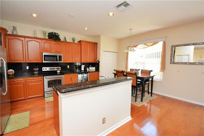 Beautiful home in Silver Shores. Featuring real wood floors on upper and lower level. Completely remodeled half bath with new sink. Newer A/C unit. Accordion shutters, for hassle-free protection. Upgraded lighting throughout. Decorative window cornices. Totally upgraded kitchen with granite counter tops, stainless steel appliances, snack bar, and breakfast area. Beautiful French doors open to private backyard. Custom poured landscape borders. The backyard is fenced with durable PVC material. Do not miss this gem of a home.