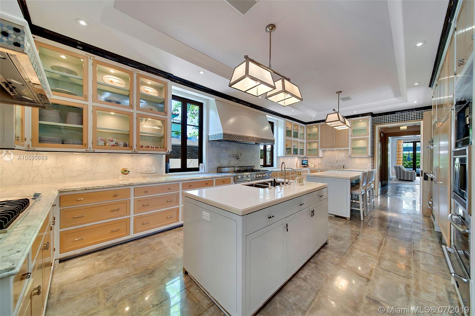 Luxury Miami living is yours in this newly-constructed 9 BR, 10+1 BA estate masterfully crafted by Architectural Digest's Top 100 Architects and Designers' Katherine Newman & Peter Cebulak. Its immaculate outdoor space boasts 100 FT of water frontage on a 27,600 SF lot allowing for the most exclusive entertaining experiences. This home spares no detail; the gated entrance with Chicago brick motor court is perfect for any car enthusiast to showcase their automobile collection. The home’s interior is complemented with perfect color palette choices, natural lighting, high ceilings, and timeless luxurious finishes. A separate 4 BR 5 BA guest house is perfect for the in-laws and friends. Also featured is a full gym, new seawall, dock, and a marvelous pool.