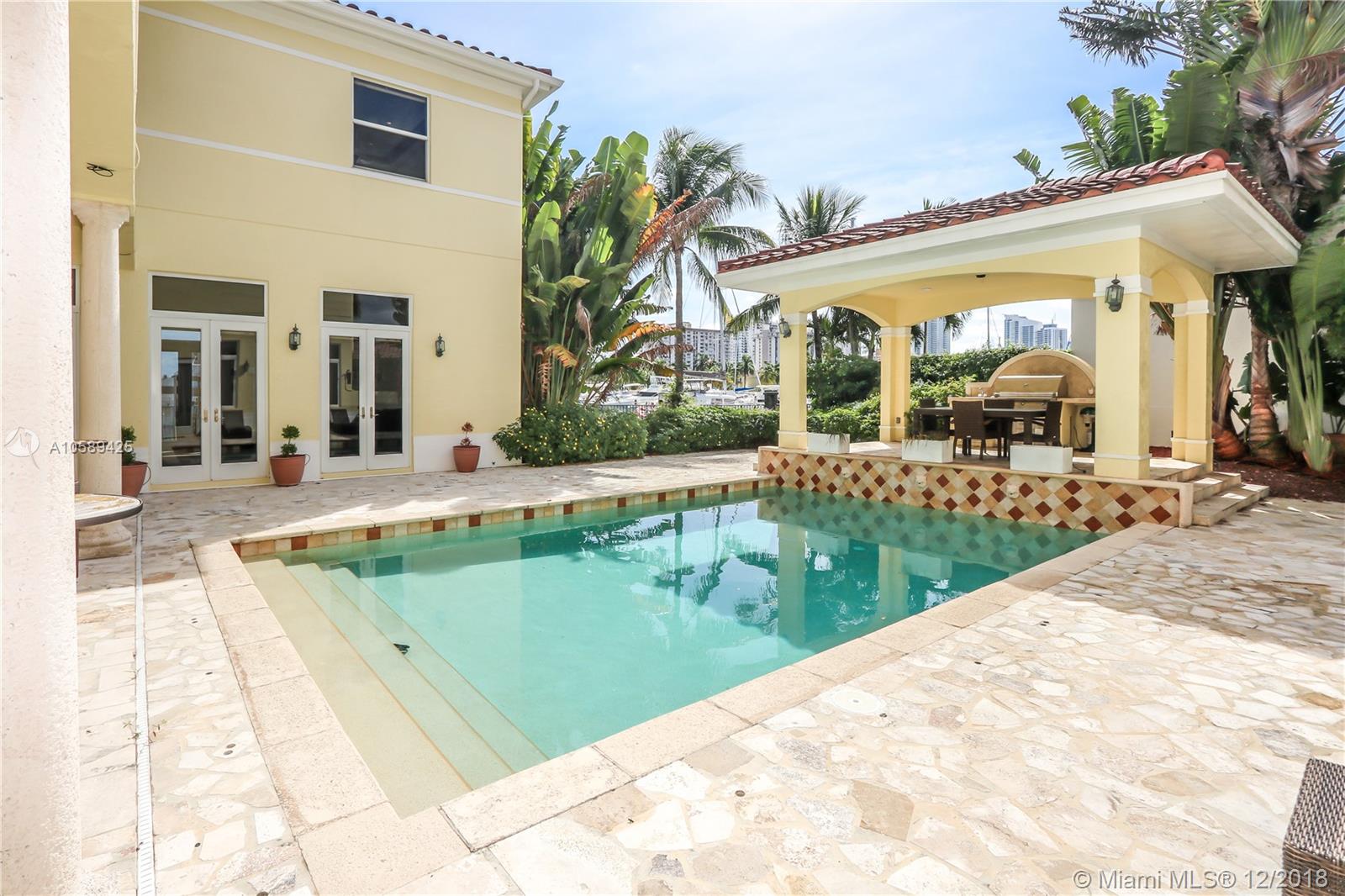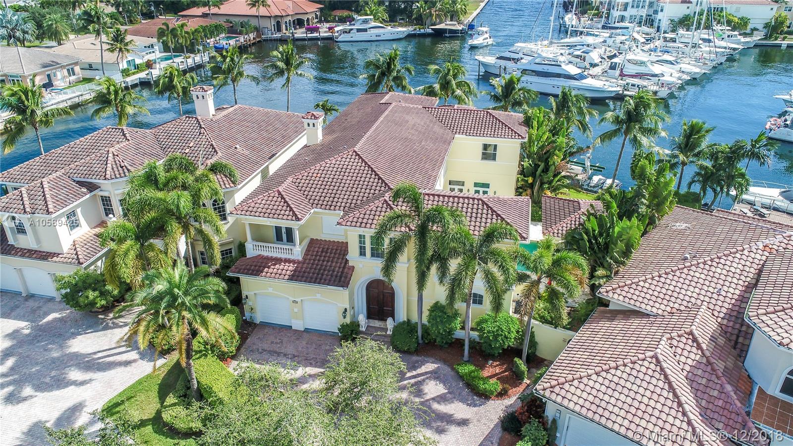 Incredible Mediterranean style home located in the gated Hollywood Harbor Islands with stunning views and ocean access. This beautiful home features a chef’s kitchen, butlers pantry living and formal dining room, and a family room overlooking the marina and courtyard that includes a pool and bbq area. The spacious master bedroom with luxurious en-suite bathroom and walk in closet also has views into the marina. This home also includes an office, den, 2 additional bedrooms with en-suite bathrooms, and pool house with an en-suite bathroom as well. This home also includes a large driveway, 2 car garage, a dock for boats and jet skis, and tropical landscaping. The community features a mommy and me park, clubhouse, gym, and walking path. Live everyday like it’s a vacation in this home.