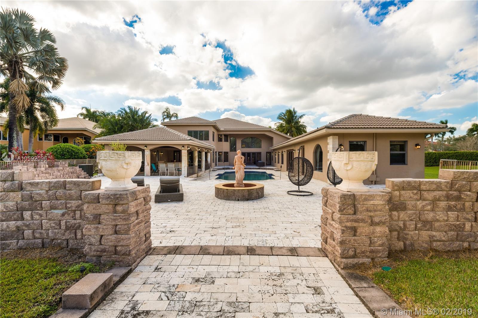 Spectacular Renoir model with 6 beds, 5.5 bath. This home has been customized with an extra wing with an in-law's suite, gym, sauna, hot tub and covered terrace with BBQ/summer kitchen. This home has all the bells and whistles; marble and cherry wood floors, european kitchen with stainless steel appliances and granite counter tops, huge loft upstairs, 3-car garage, community tennis/basketball courts adjacent to home, new airs (2018) and new pool heater. Most east facing windows and doors are hurricane impact glass. A-rated school district, 24 hour security and so much more!!