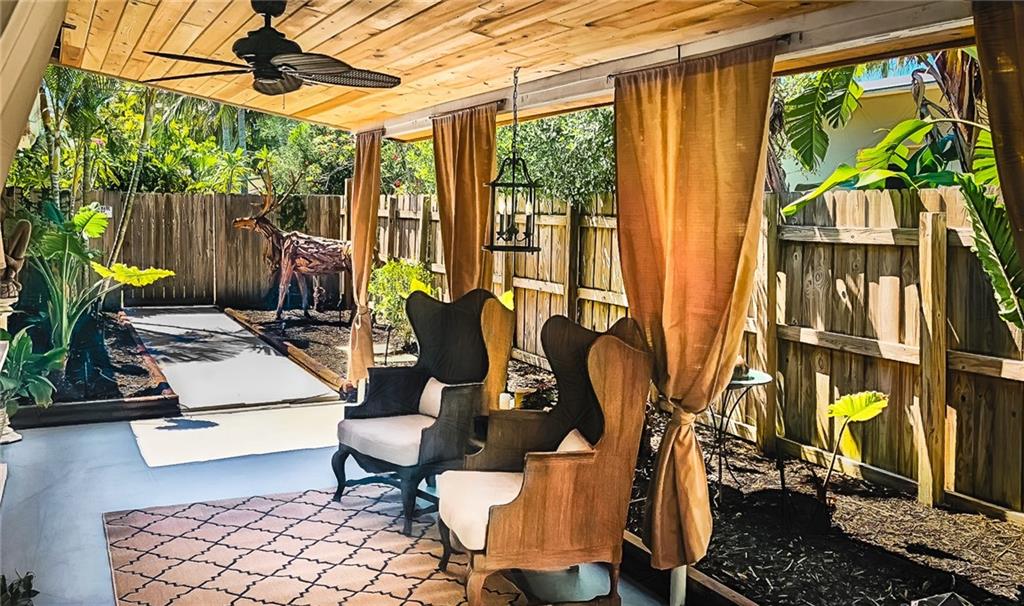 OFFERED UNDER APPRAISED VALUE, MOTIVATED SELLER !!! Charming 2/1 in desirable Poinsettia Heights, this warm and cozy cottage offers an amazing outdoor space to entertain with friends and family. Large fenced yard with room for a pool, two separate covered patios with an outdoor kitchen and a great relaxing living area. Custom exterior lighting. Light and bright living room, generous bedroom opening to the backyard. The second bedroom is being used as an office space. Updated kitchen cabinets. Separate laundry room. Property needs updates. This is the best deal on the east side of town! Bring all offers.