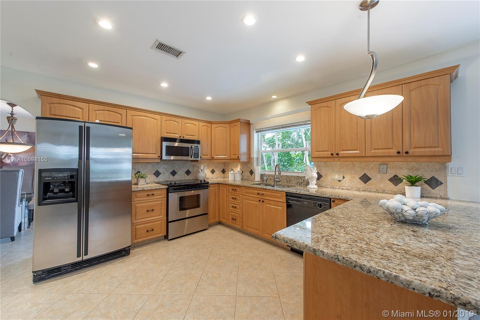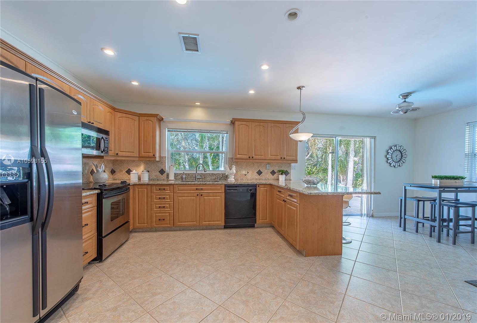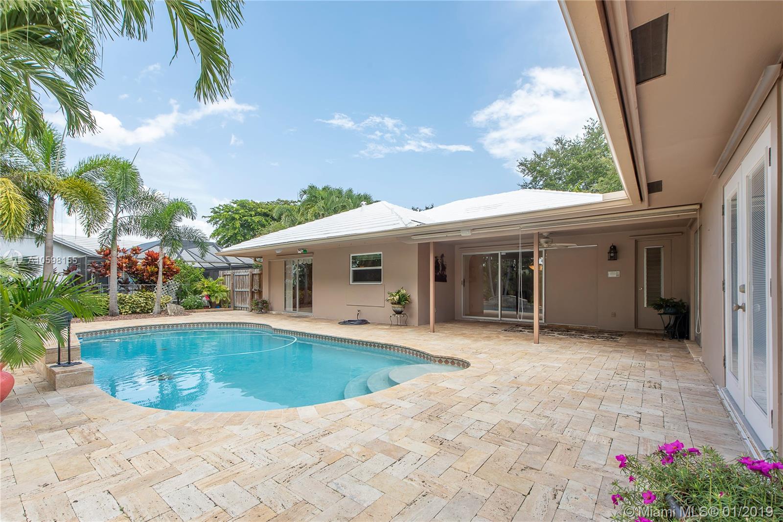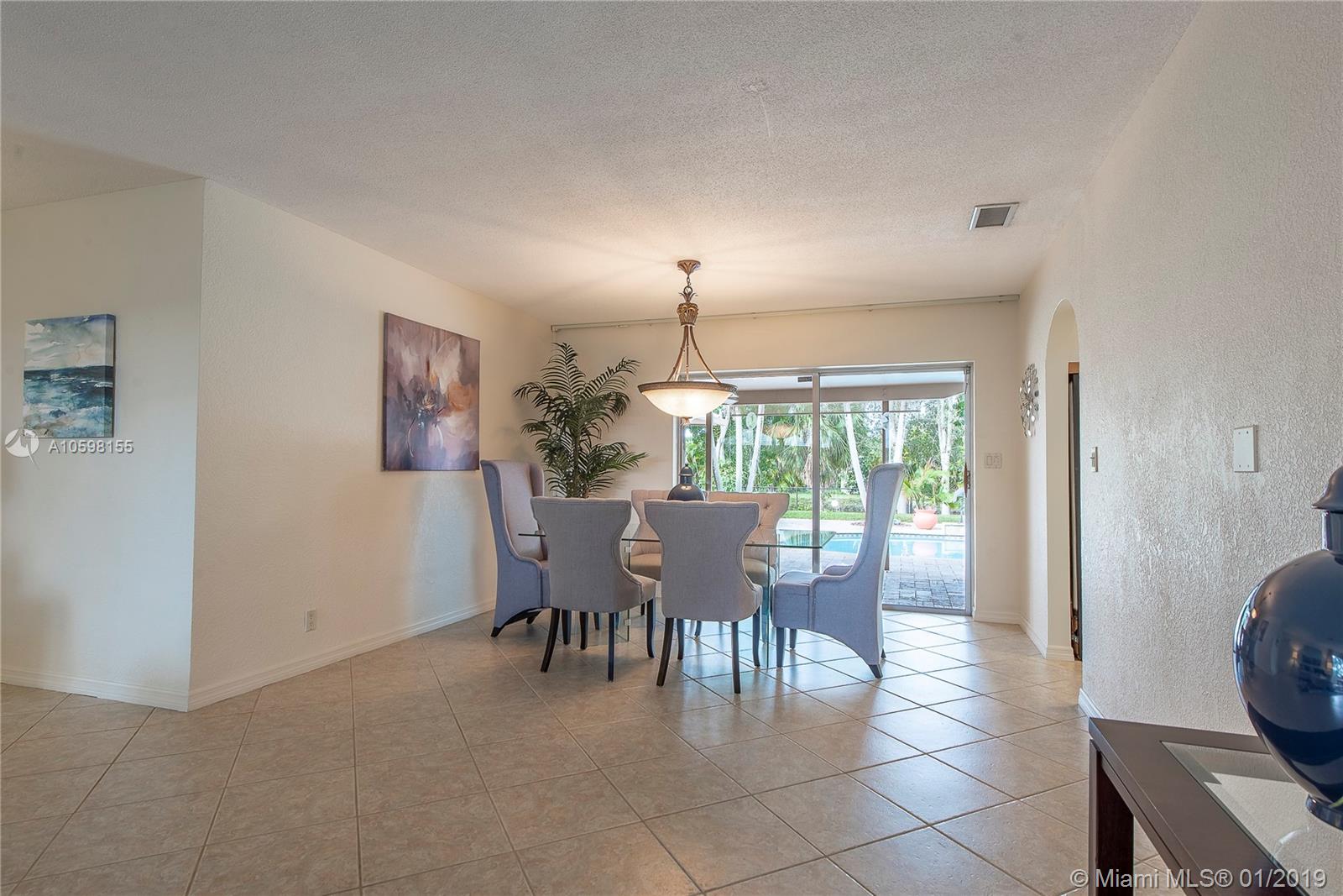 Enjoy the sunset while relaxing by your pool in this tropical island setting. This immaculate El Dorado Estates 3/2 waterfront pool home is conveniently located near popular shopping areas and entertainment in a gated neighborhood with 24/7 roaming security. Your beautiful home provides updated kitchen and bathrooms, a large pantry, Stainless Steel appliances, granite counter-tops, and a spacious yard in a tropical setting. The property is fenced and private, with an over-sized 2 car garage , & paved patio. The HOA has a clubhouse, professional tennis courts, picnic area and a professionally designed private (resident only) children's playground. A very secure neighborhood.
