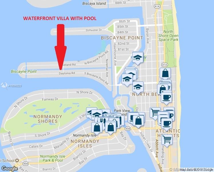 Recently updated and very private waterfront villa in the gated island of Biscayne Point in Miami Beach. Pool, dock and boat lift. A paradise 10 minutes away by boat from the gorgeous waters and fun of Haulover sandbar and the open ocean. The villa features hurricane impact windows and doors, 4 bedrooms, 2 bathrooms, porcelain floors in the living areas, kitchen granite countertops and stainless steel KitchenAid appliances, separate Whirlpool Duet washer & drier, a refreshing mist system installed in the pool patio & backyard and security cameras throughout the property. Call listing agent for additional information and a private showing.