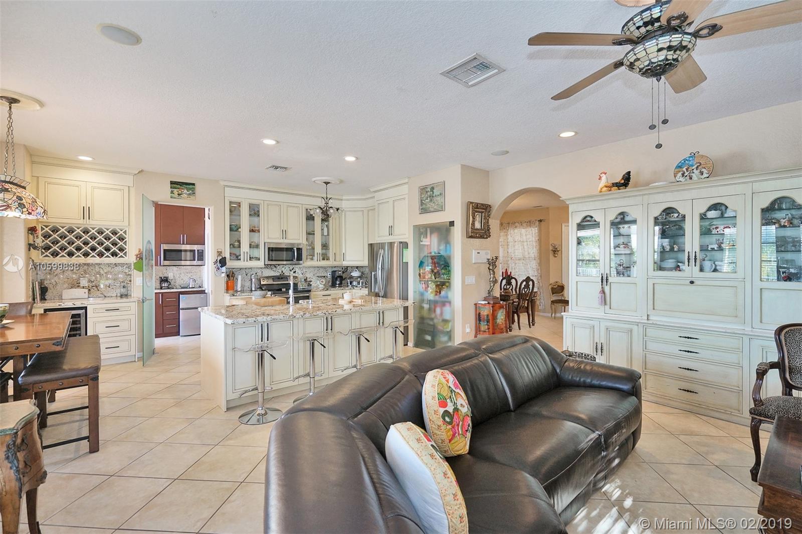 Entertainment and location what a perfect combination! HUGE driveway that accommodates up to 8 vehicles and 2 car garage makes this 5 bedroom and 3 bathroom home the perfect place for a big family. The house location is perfect to enjoy the sunset by the inviting swimming pool or spa, and with no neighbors in the back you'll feel like you own your private resort. This magnificent home offers an in law quarters with its own private entrance and exit to the swimming pool with a renovated bathroom that functions as a cabana bath. Upstairs there are 4 bedrooms including a massive master bedroom with office/sitting area and two sinks separated by a beautiful shower. Silver Isles offers on-site management, swimming pool, gym and guarded gate for your privacy and security.