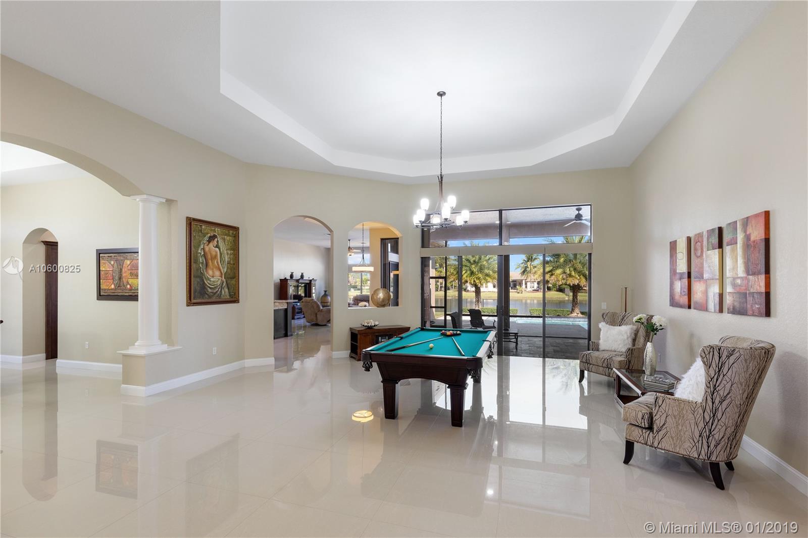 LARGEST 1 STORY MODEL IN RIVERSTONE! THE WATERFRONT HOME WITH SALT WATER POOL & SPA OFFERS 6 BEDROOMS + A GYM AND IS SITUATED ON A BUILDERS ACRE LOT. FEATURES INCLUDE 36X36 PORCELAIN FLOORING THROUGHOUT, 12 FT CEILINGS, MASTER SUITE WITH HIS & HERS BATHS IN ADDITION TO A SEPARATE SITTING AREA. ADDITIONAL UPGRADES INCLUDE CUSTOM WINDOW TREATMENTS, CUSTOM BUILT CALIFORNIA CLOSETS, DOUBLE OVENS, SECURITY SYSTEM, SMART LOCKS, NEW WATER HEATER, 2 A/C UNITS, FULL HOUSE GENERATOR & 3 CAR GARAGE. THE OUTDOOR SPACE IS DESIGNED TO ENTERTAIN FEATURING AN OVERSIZED TRAVERTINE TERRACE WITH ENCLOSED PATIO, PROFESSIONAL LANDSCAPING & OUTDOOR LIGHTING. THE GATED COMMUNITY OFFERS RESORT STYLE AMENITIES INCLUDING PARTY PAVILION, BASKETBALL & TENNIS COURTS.