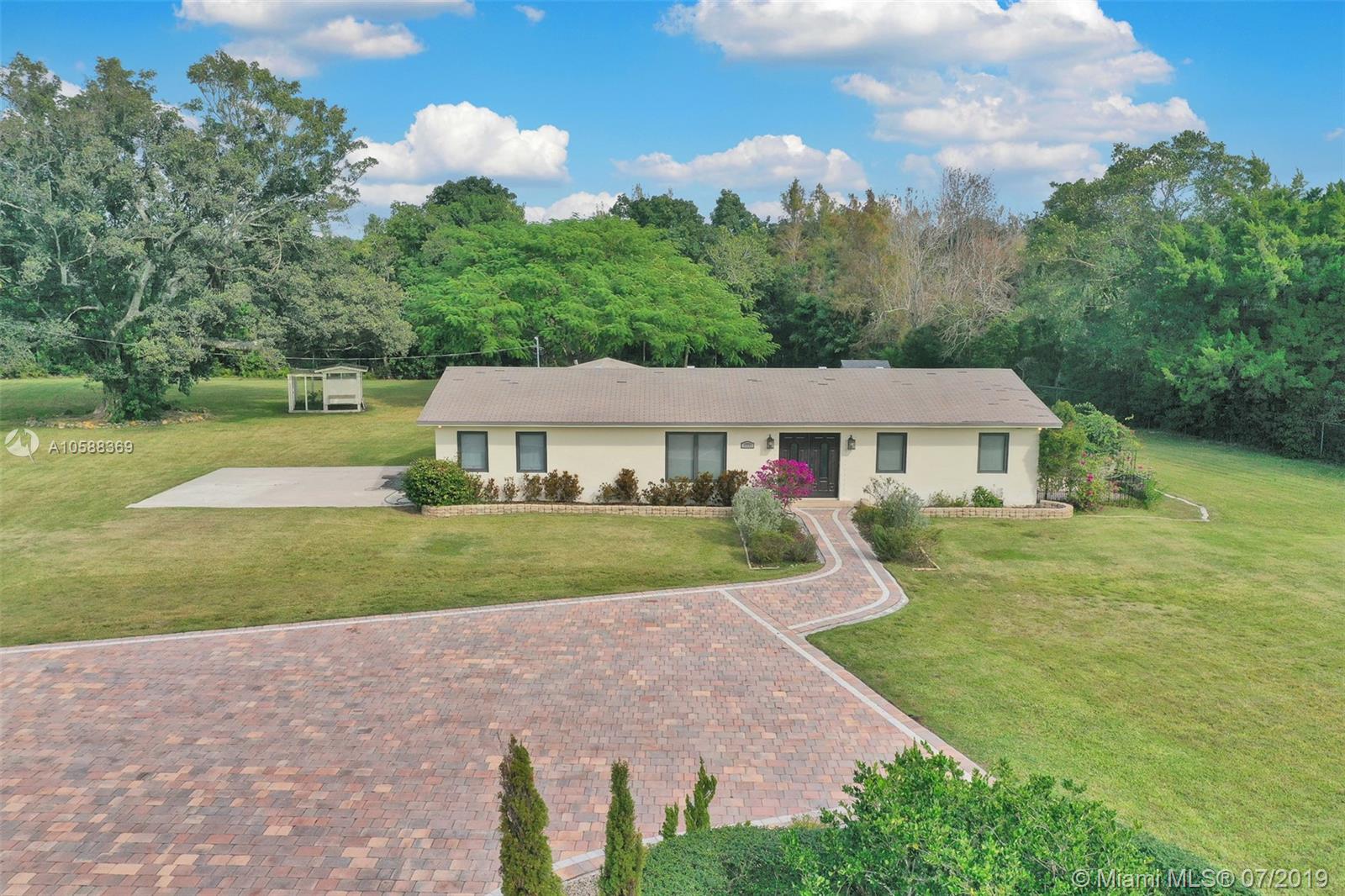 Beautiful SW RANCHES home w/ 2 Acres of breathtaking land; tastefully decorated 3/2 split fl plan. Home was gutted & rebuilt in 2012 w/ new plumbing, electrical, mechanical, & hurricane impact doors/windows. 2012 -New deep water well & shallow well available for irrigation. 2015 -Tankless water heater & 500 gallon underground gas tank. Window coverings & LED lights throughout increase energy efficiency. Gourmet kitchen w/ large gas stove, new refrigerator, 2 ovens, lg island w/ built in wine fridge & microwave. Each bedroom has custom built-in closets, high end light fixtures, & crown molding. Paver driveway accommodates 14+ cars. Huge back patio paved, plenty of room for a pool, horses, agricultural use, even another home. SEE ATTACHED FEATURE LIST for full interior & exterior features.