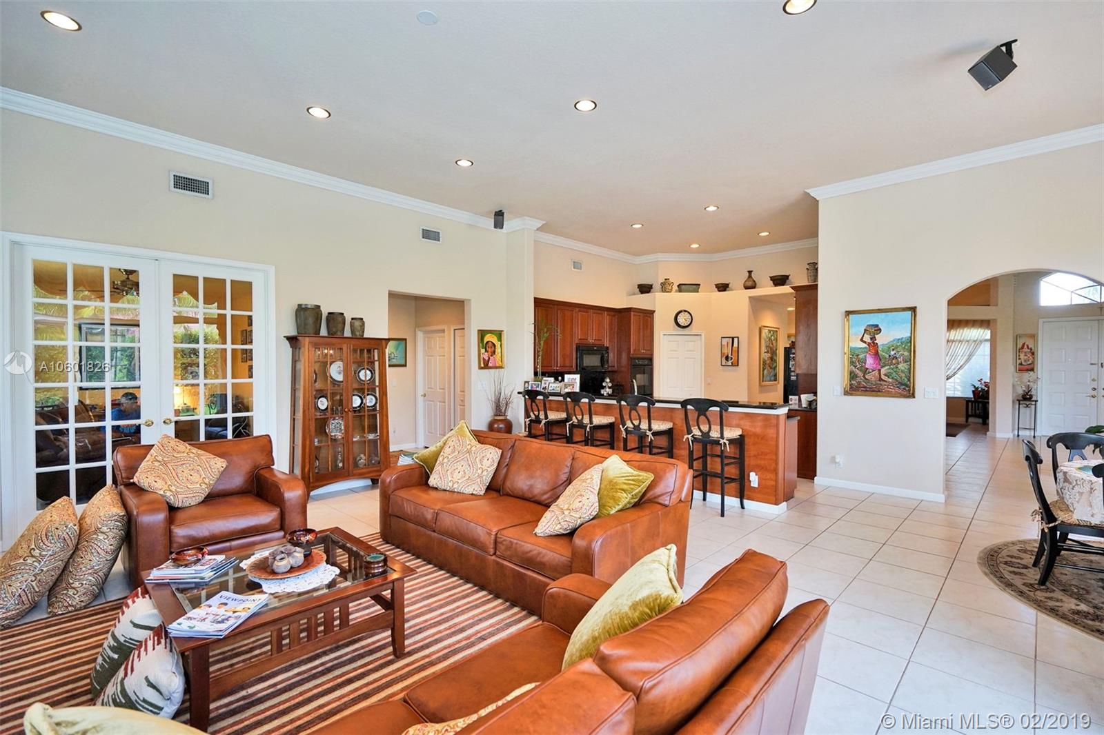 Gorgeous Waterfront Pool Home on an oversized lot. Featuring 5 Bedrooms, 3 Bathrooms, plus Den, & 3 Car Garage. Home Boasts 3,538 SF under air w/ High Ceilings, Crown Moldings, Split/Open Floor Plan, & Lots of Natural Light. Gourmet Chef’s Kitchen w/ Double Oven, Cherrywood Cabinets, Black Granite Countertops, Black Appliance, & Lg Pantry. Enjoy Entertaining in your Formal Dining Room with Butler Pantry/Bar. Master Bedroom w/ Beautiful Pool & Water View, Walk-in Closet. Lg Bedrooms w/ Ceiling Fans and Spacious Closets. Fenced Private Backyard w/ Free Form Heated Pool & Mature Landscaping. Home Protected w/ Accordion Shutters and 16 Camera Security System w/ DVR.