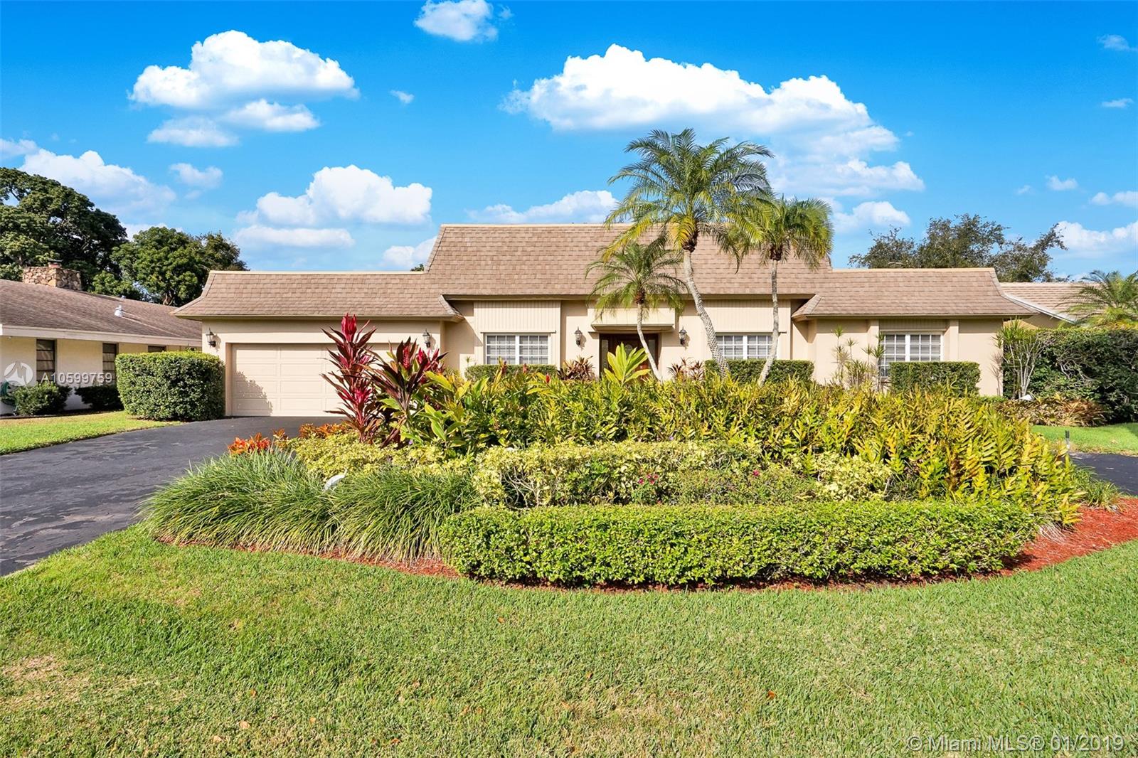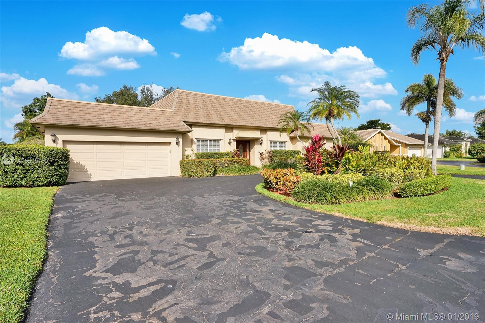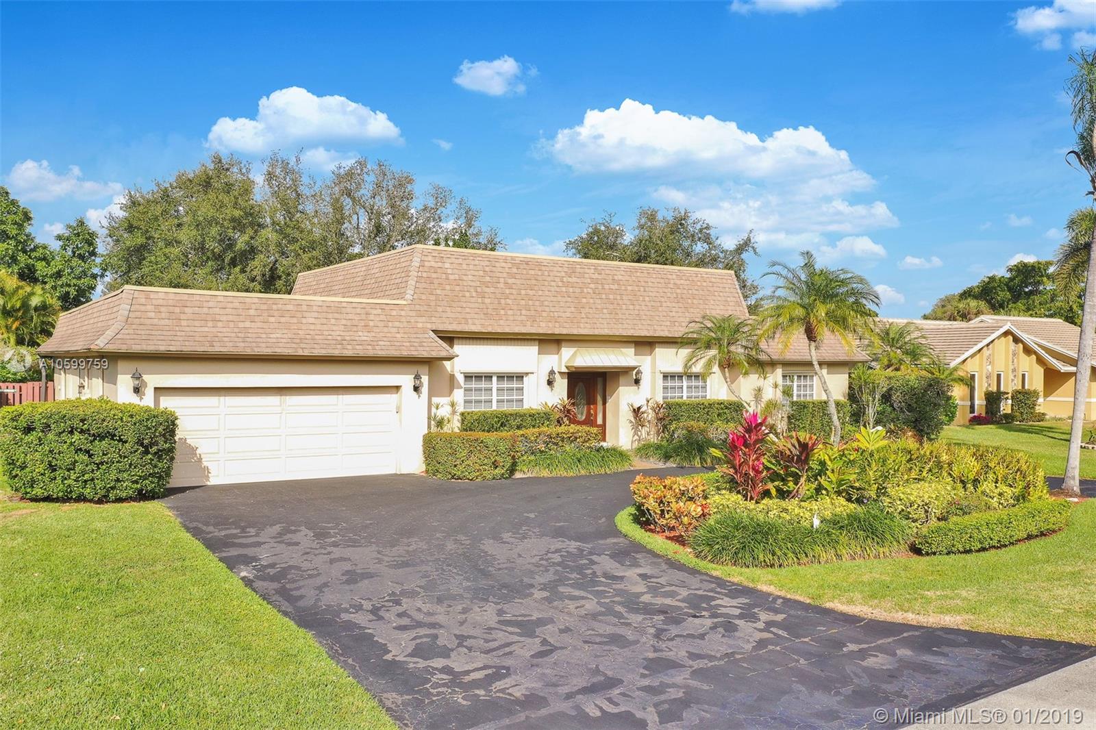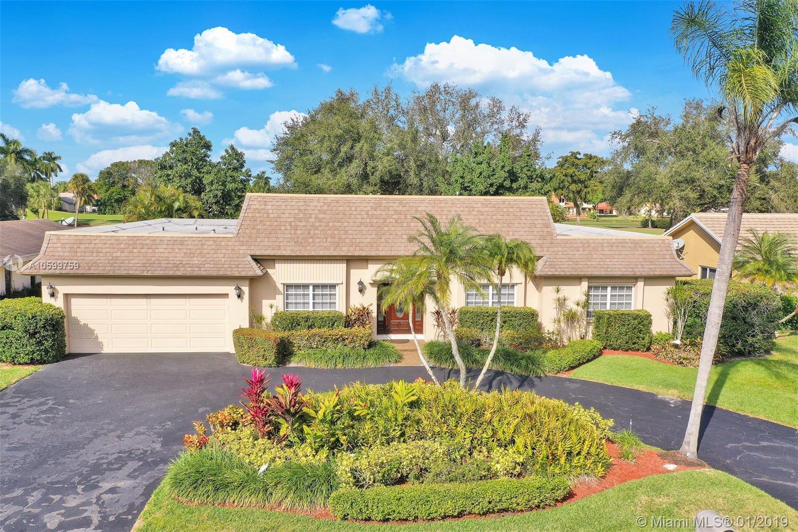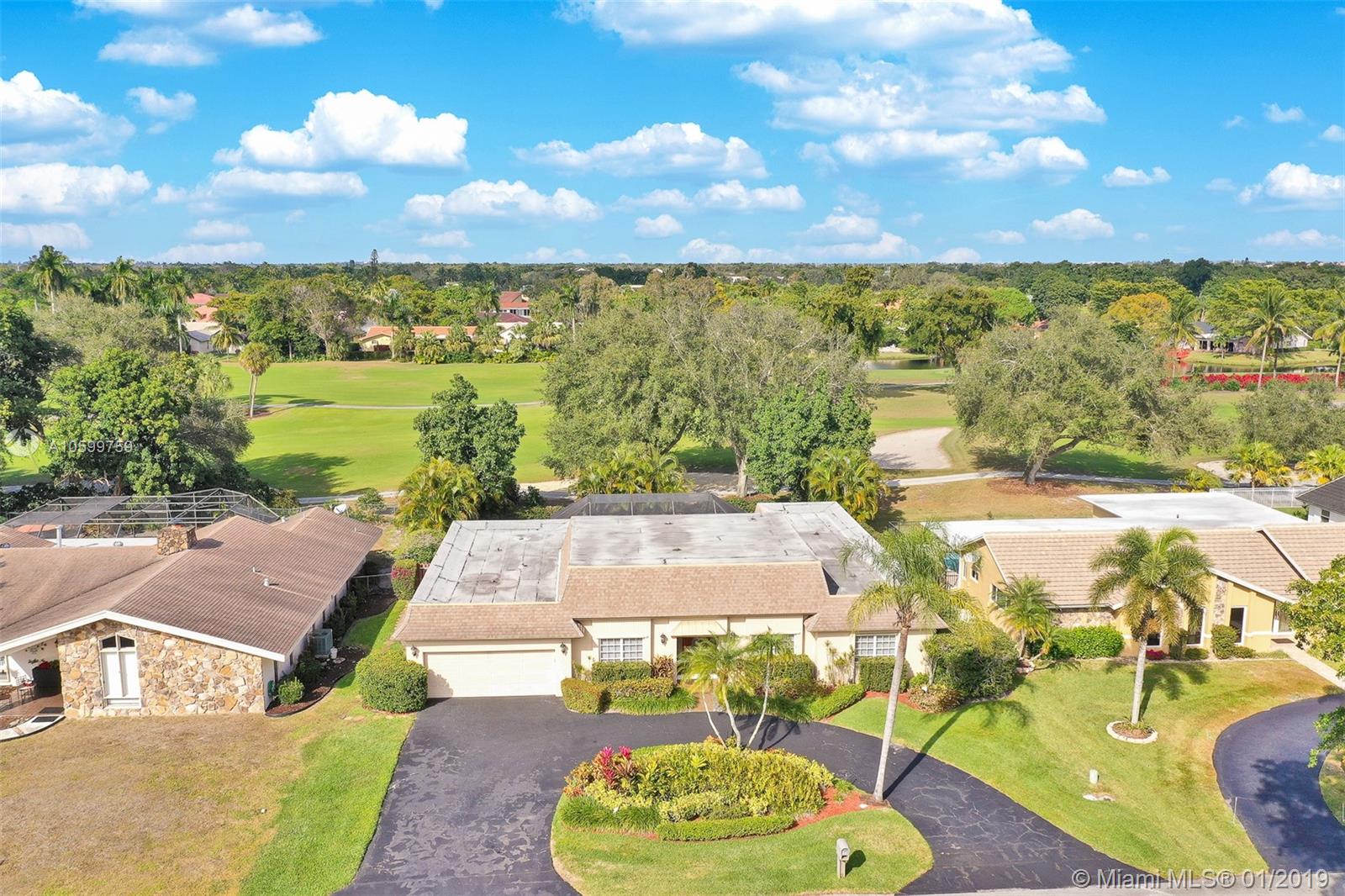 Roomy, Custom 4/2.5 Estate Home in Jacaranda Country Club West. Gorgeous Golf Course view, beautiful landscaping, fully hurricane protected. Features such as: circular driveway, pool, fenced yard, 2 avocado trees, large covered patio with built in brick BarBQ grill, nice size bedrooms, many closets throughout, intercom with radio, built in bar w/ refrigerator, perfect for entertaining. Home could use some updating but is move in ready. A real gem for the community. Original owner, maintained everything to a tee. Maintenance is $185 annually and no golf membership is required. Walking distance to Public golf course with a restaurant. Food is delish & affordable. You won't want to miss this. Easy to show. Come view and make an offer before it's gone!