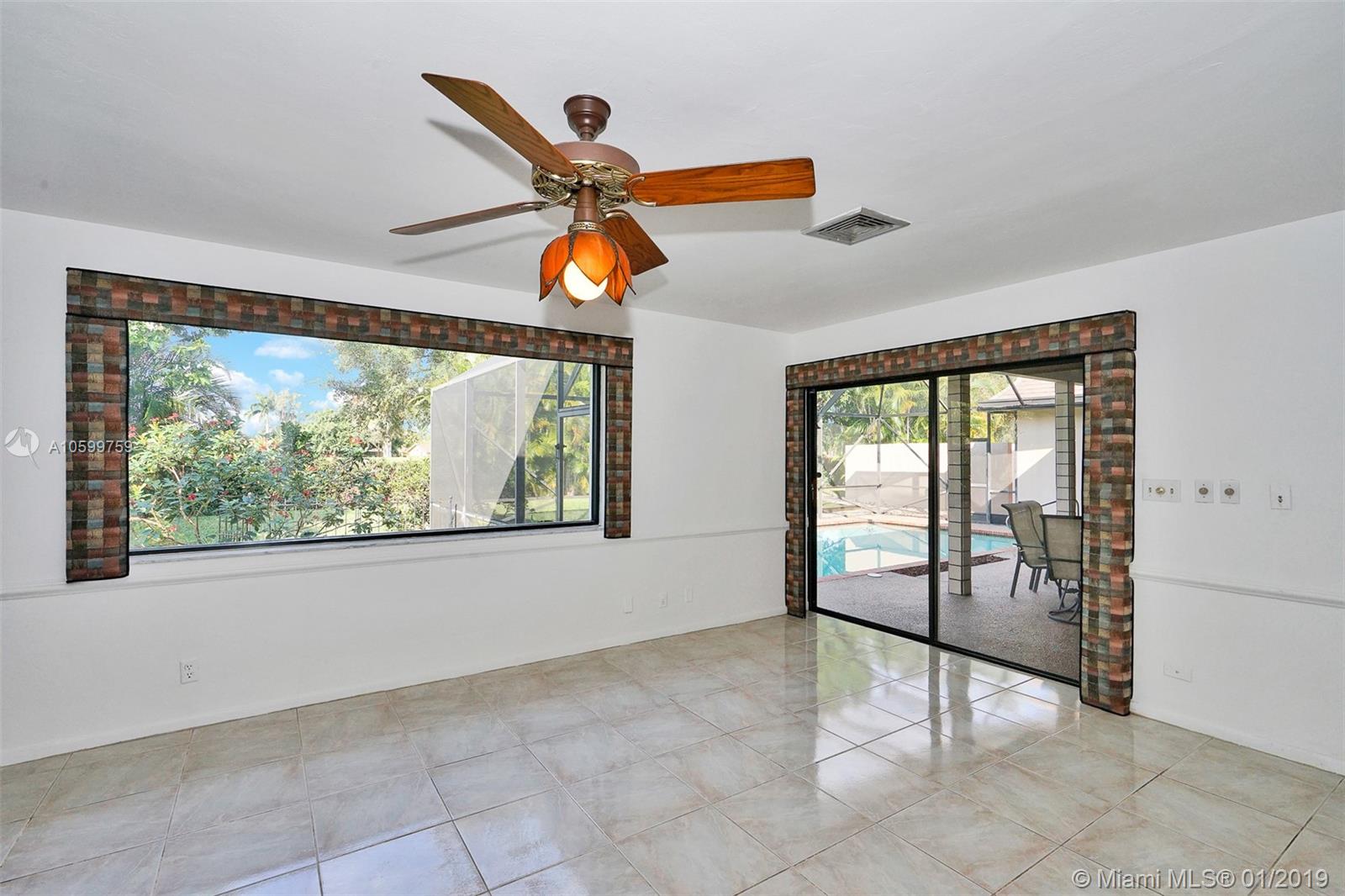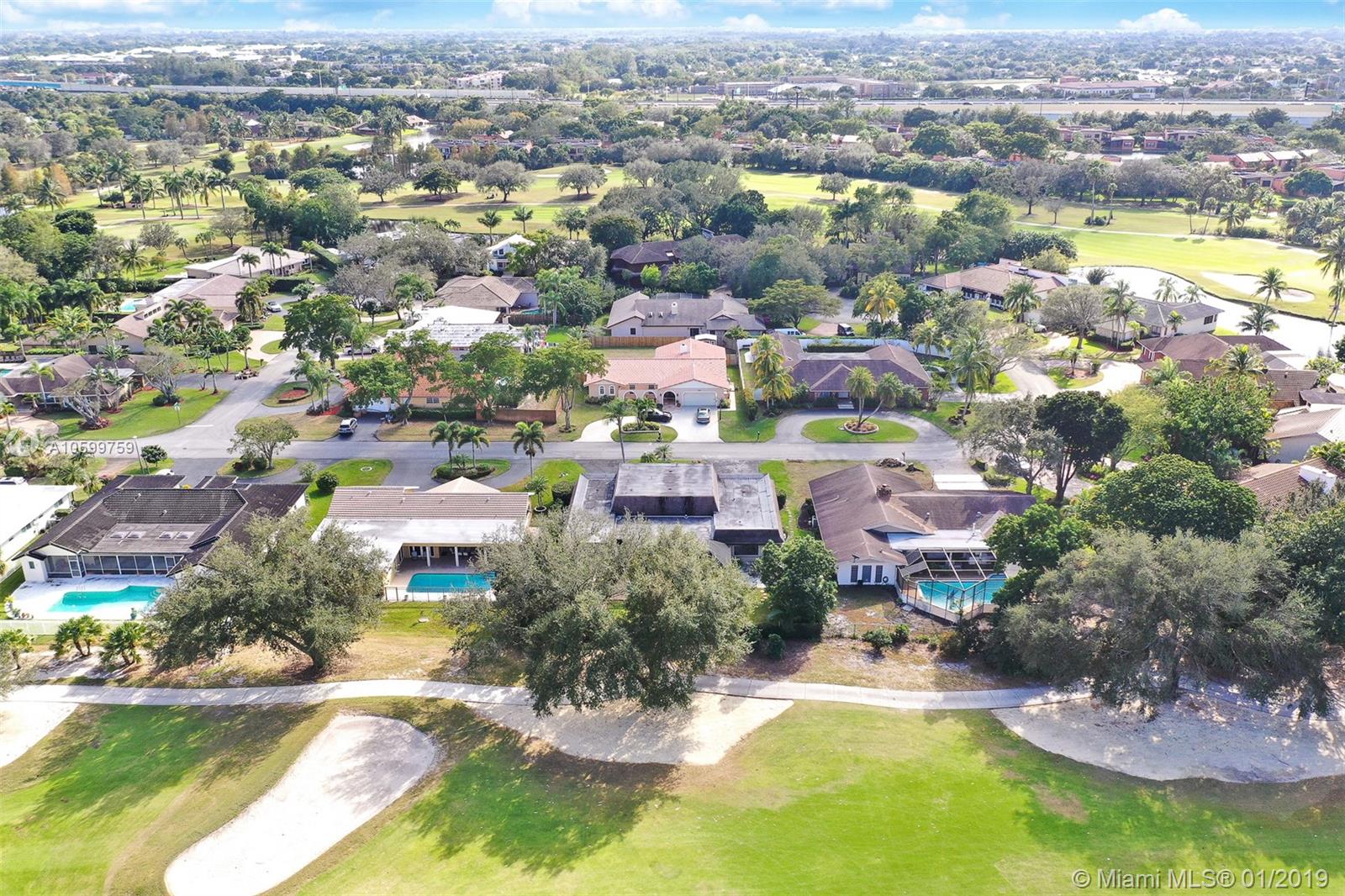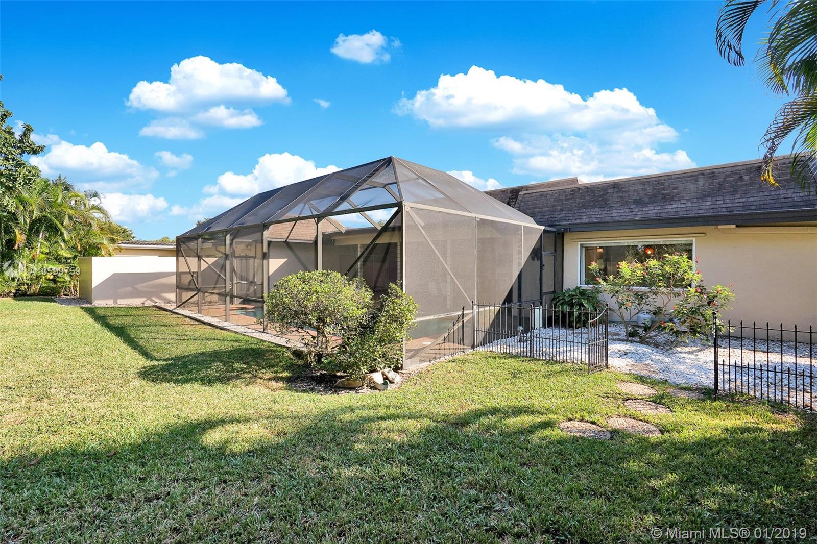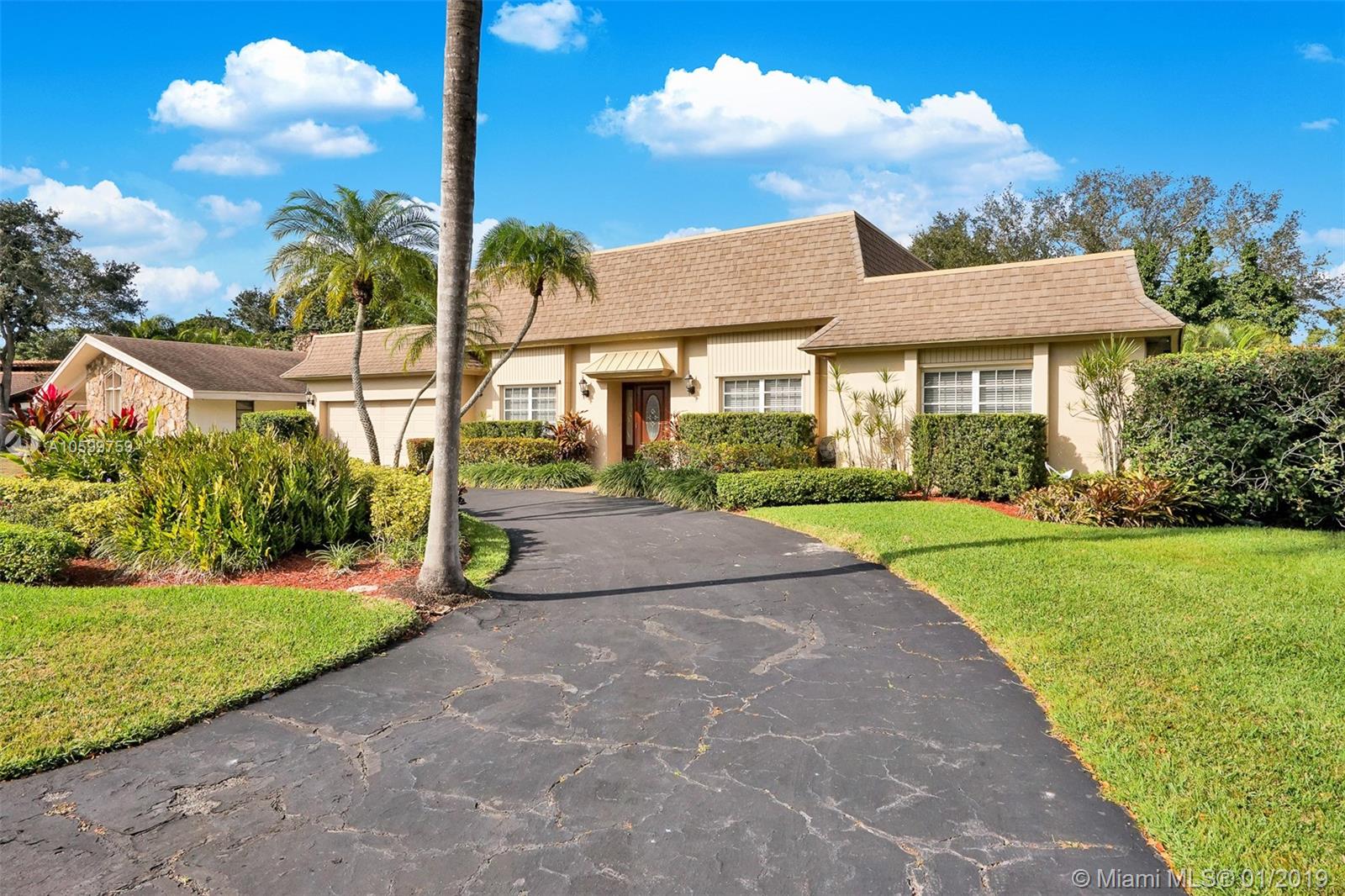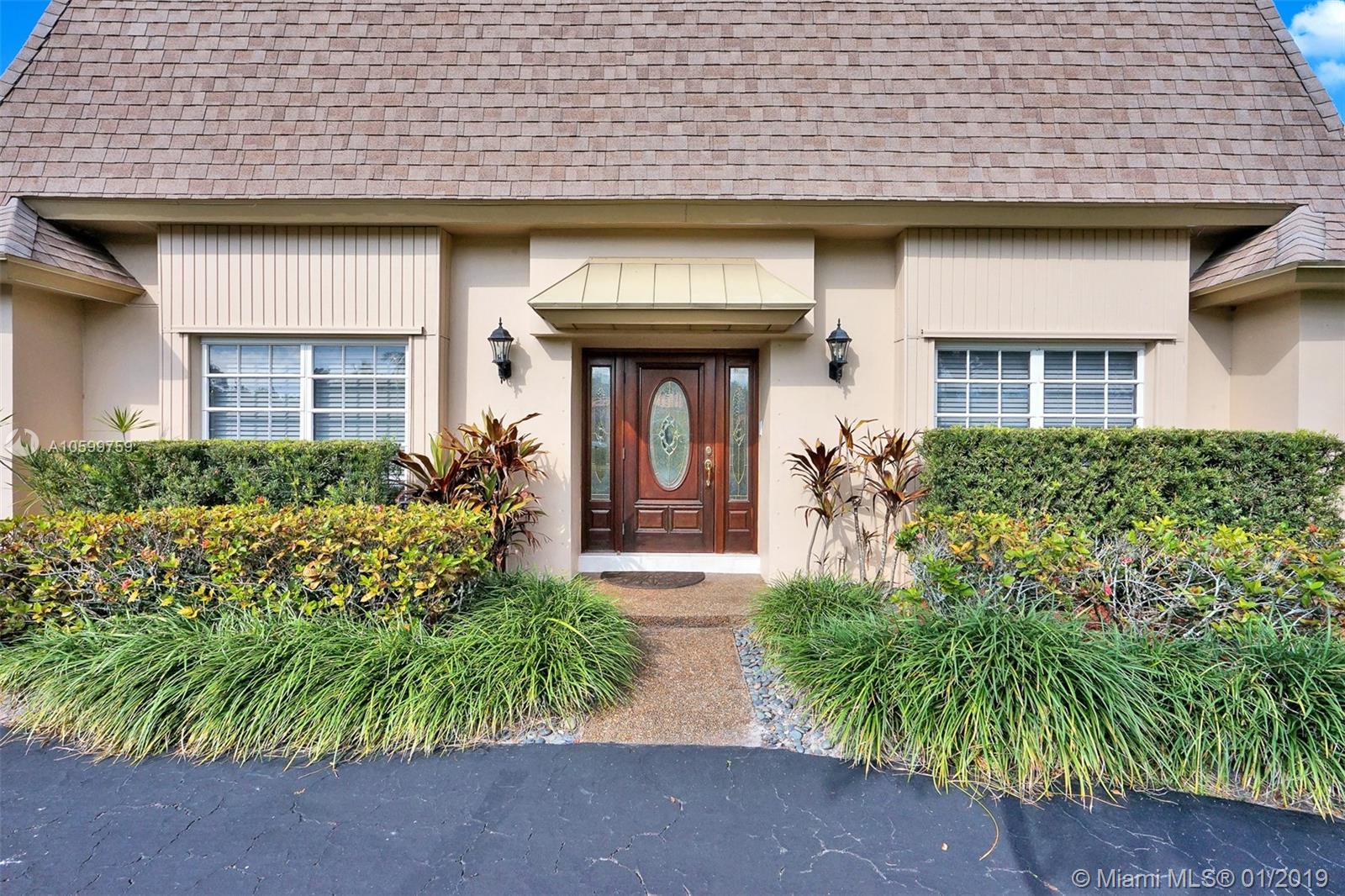 Roomy, Custom 4/2.5 Estate Home in Jacaranda Country Club West. Gorgeous Golf Course view, beautiful landscaping, fully hurricane protected. Features such as: circular driveway, pool, fenced yard, 2 avocado trees, large covered patio with built in brick BarBQ grill, nice size bedrooms, many closets throughout, intercom with radio, built in bar w/ refrigerator, perfect for entertaining. Home could use some updating but is move in ready. A real gem for the community. Original owner, maintained everything to a tee. Maintenance is $185 annually and no golf membership is required. Walking distance to Public golf course with a restaurant. Food is delish & affordable. You won't want to miss this. Easy to show. Come view and make an offer before it's gone!