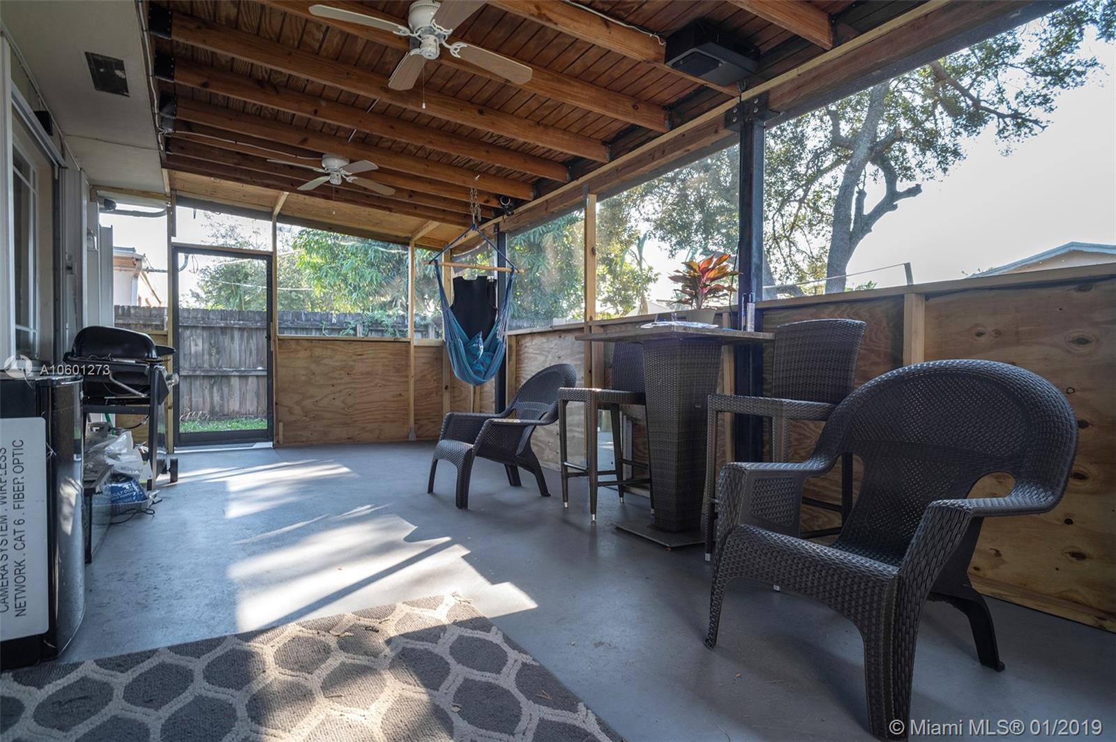 Beautiful 3 bedroom 2 bathroom home in Hollywood! This home contains an open layout with more square footage than the average home in the area. Gorgeous tile is located throughout the house with laminate flooring in the bedrooms. There is plenty of storage with a laundry room, an extra shed in the backyard, as well as an extra bedroom from a converted garage making this a 4 bedroom house. The garage still has plenty of extra storage space as well. The backyard is spacious, containing plenty of yard space as well as a large screened in patio that is perfect for entertaining! It is also fully secured with hurricane shutters and a security system with cameras. This home also contains newer air conditioner. No association!