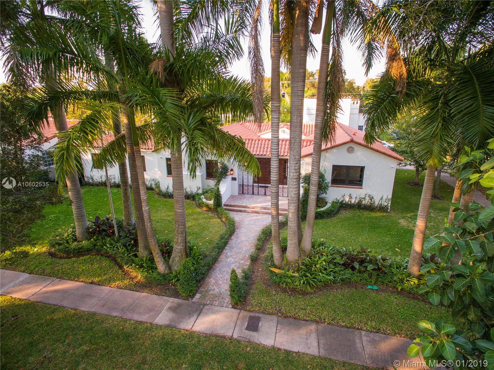 1930's historically designated villa now 100% renovated to absolute perfection! 3462 sq.ft per Coral Gables building plans, on a 10,000 sq ft corner lot, all on one floor, 4 bedrooms and 4 full baths, 2018 built new master suite, wonderful open floor plan with brand new, never been used white on white kitchen open to dining, living, interior courtyard and backyard raised patio area. Room for a pool with architectural drawings available. 2 car garage. Cathedral ceiling in living and dining area. Oak flooring. Foyer. Coveted location in Coral Gables Old Town Historic District within easy walking distance to all the delights of downtown Coral Gables - restaurants, cafes, shops, bookstores, art galleries and just a 15 minute Uber ride to Miami International Airport.