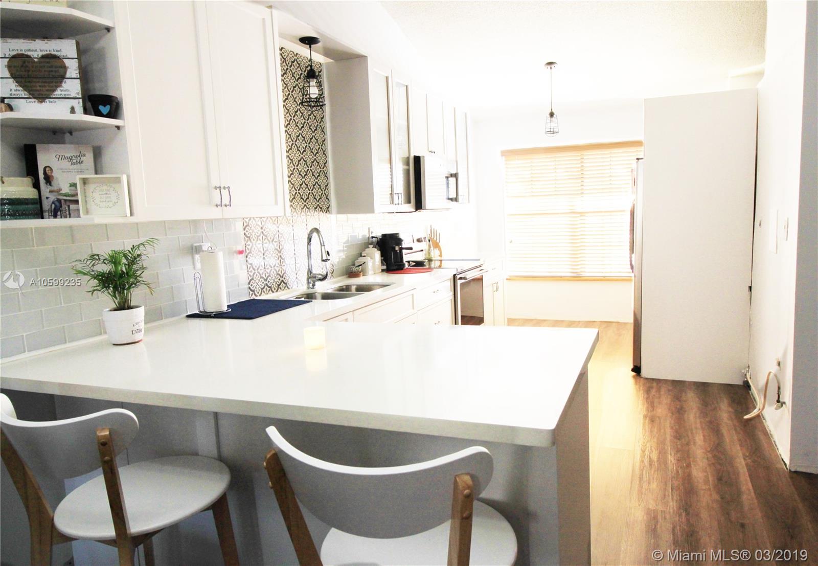 BEAUTIFUL AND REMODELED 2/2 + LOFT END UNIT IN PEMBROKE LAKES . UNIT FEATURE HIGH VAULTED CEILING, LARGE BEDROOMS WITH WALK-IN CLOSETS. UPGRADED KITCHEN WITH QUARTZ COUNTER TOPS, A LOT OF CABINET SPACE, WOOD FLOORS THROUGH OUT, COVERED PATIO, FENCED YARD AND STORAGE SHED. A MUST SEE. WON'T LAST !!
