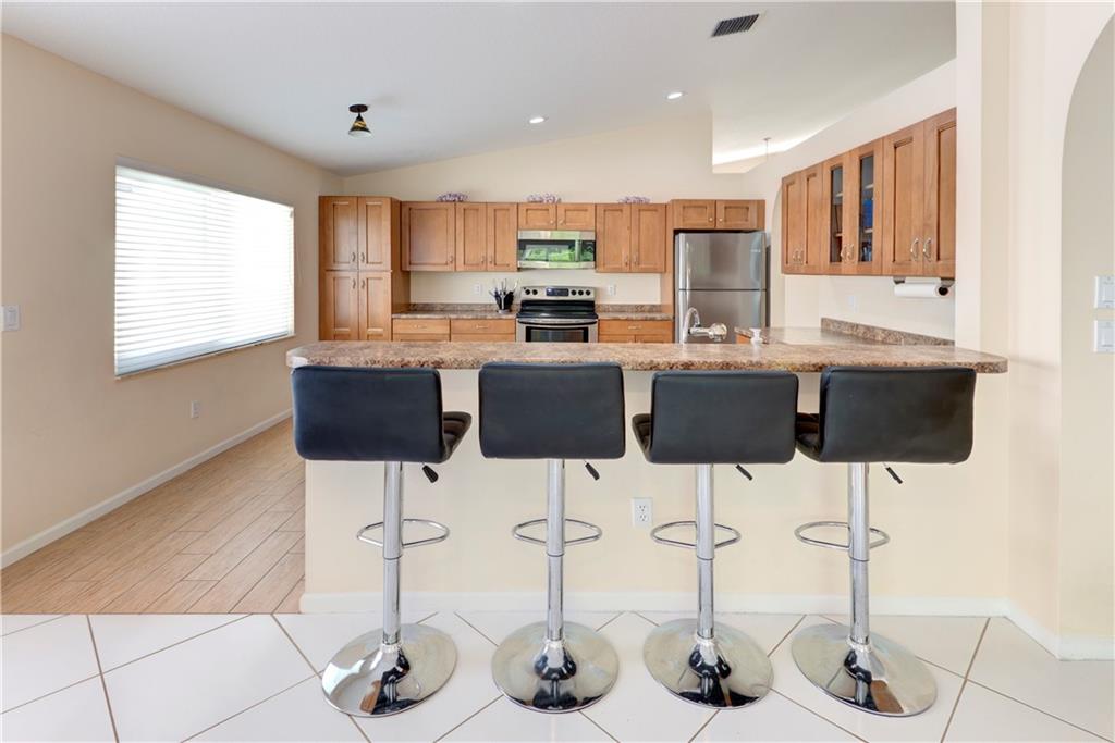 Stunning 3 Bedroom 2 bath home centrally located in the quiet secure community of Crescent Lakes overlooking a preserve with no neighbors for full privacy in your backyard. This bright and open home features a new Fridge, vaulted ceilings, newly renovated master bathroom and master bedroom flooring, 2 walk in closets in master bedroom, brand new ceiling fans and lighting throughout, screened patio, accordion hurricane shutters and hurricane garage door. Crescent Lakes is a secure ,well maintained, family community that offers low HOA fees, pool, jacuzzi, clubhouse, tennis courts and auto gate. Dogs no more than 50lbs.