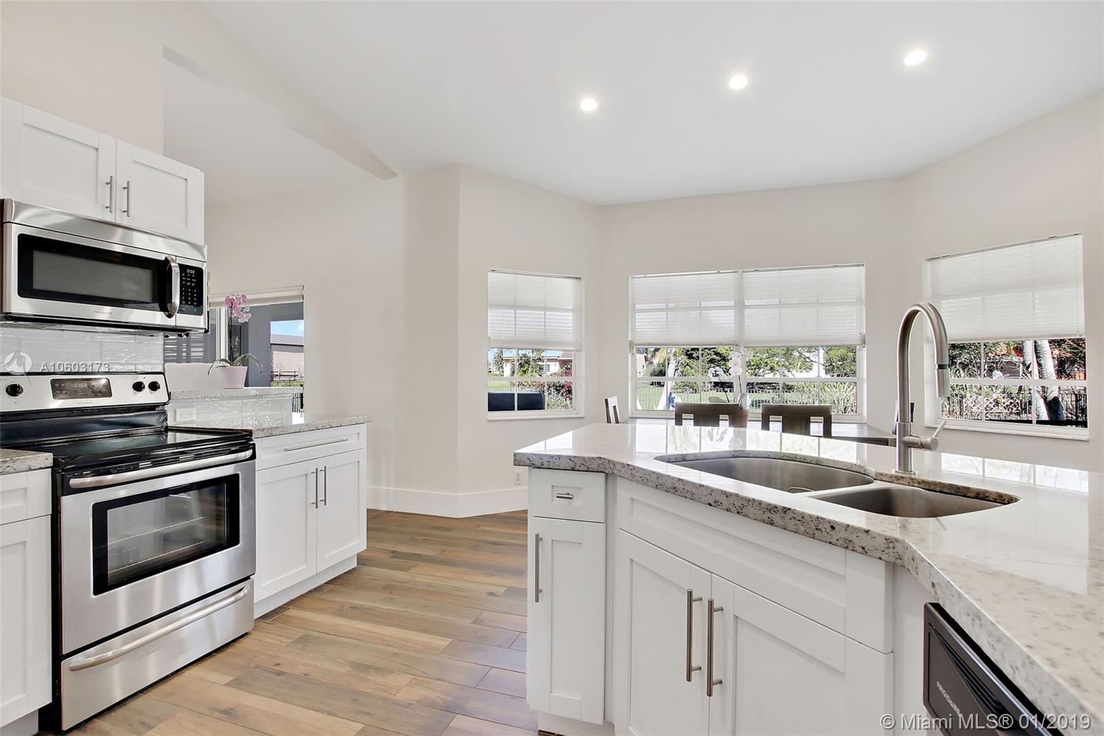 Spectacular & completely renovated home in highly sought-after Plantation Acres. Home is a true turn key property. Features 4 bed & 2.5 baths with a 2-car garage & a heated saltwater pool. Tastefully renovated with wood like plank tile flooring throughout and oversized baseboards. Master bathroom features dual sinks and an oversized shower. Grandmaster bedroom includes his and hers closets. The kitchen includes all new cabinetry with granite counters, tile backsplash & SS appliances. Split bedroom floorplan provides plenty of privacy. Tankless water heater and a separate laundry room for your convenience. Plantation shutters add a touch of elegance. Freshly painted exterior and interior with modern tones. Paver driveway provides for plenty of parking. PLEASE SEE BROKER REMARKS.