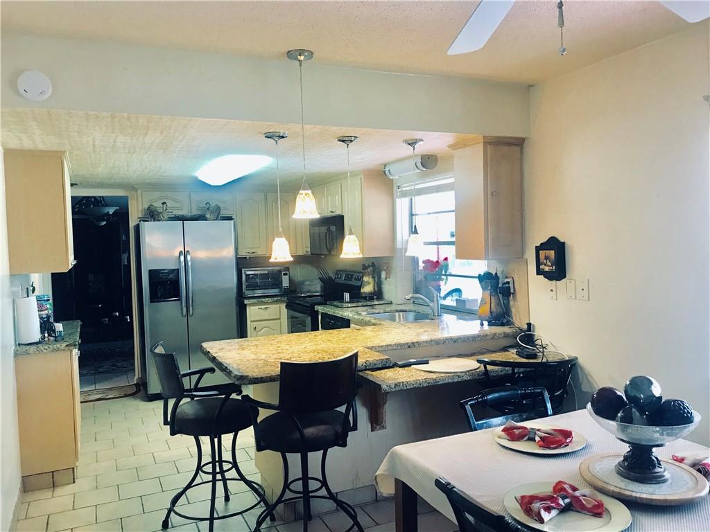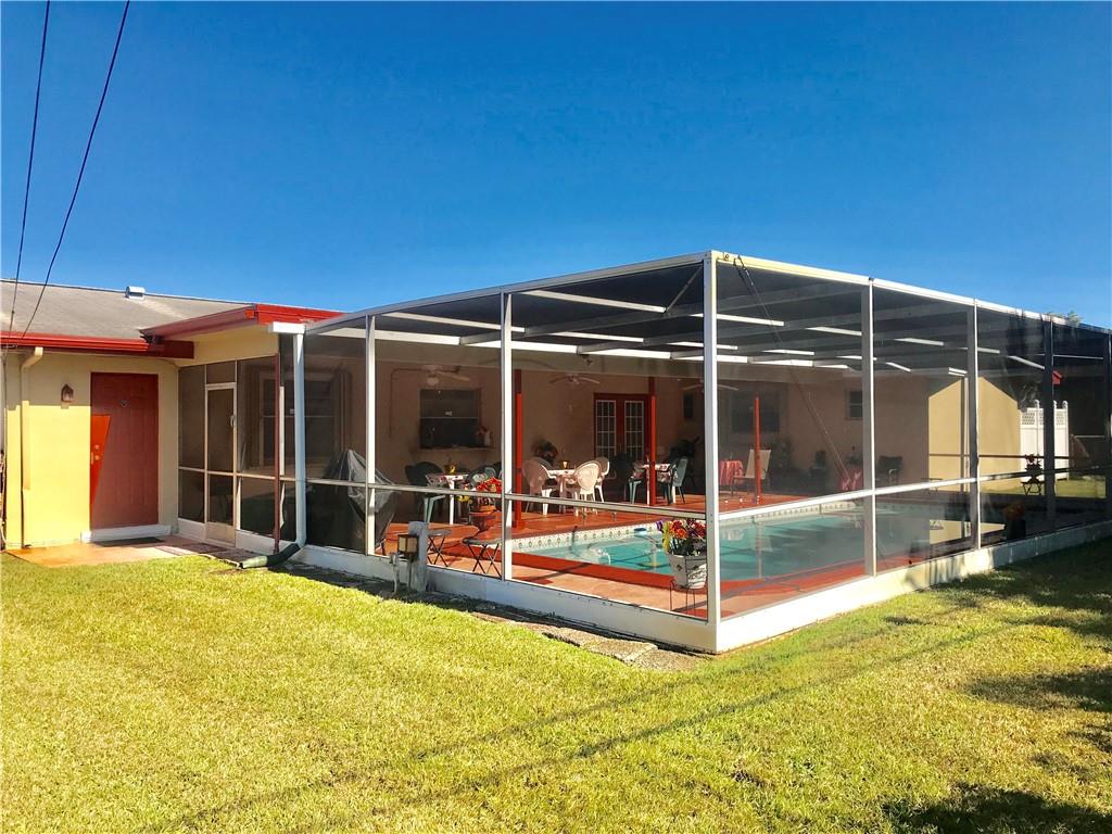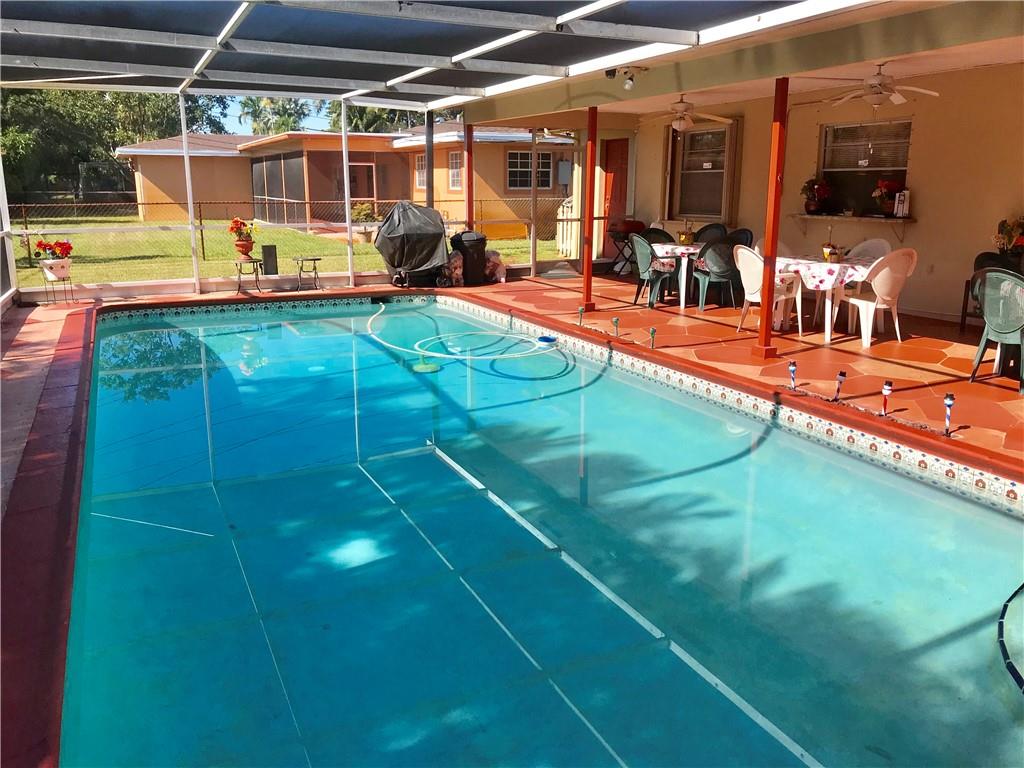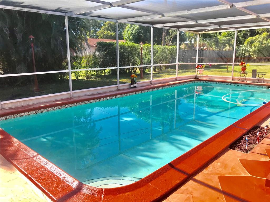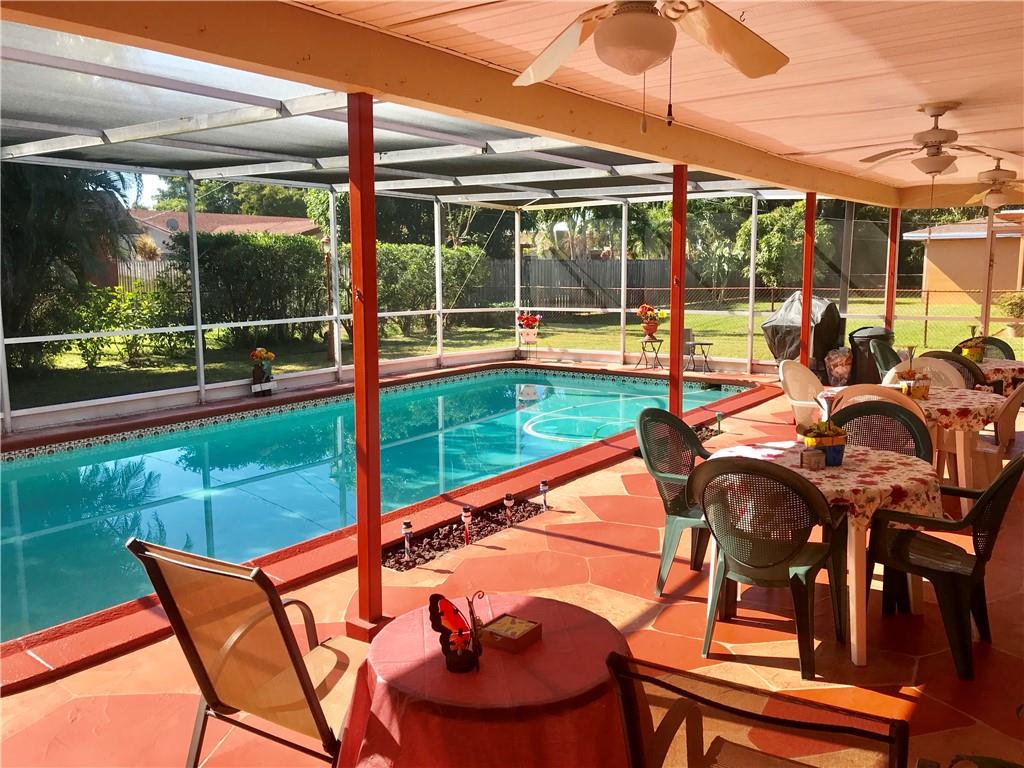 Beautifully maintained 4 bedroom home in the well located Mirror Lake subdivision. This home has an updated eat in kitchen with snack counter that opens to the dining and living areas as well as family room. Stacked bedrooms are generously sized and the master features beautiful wood laminate flooring. French doors lead from the family room to the large screened pool and patio with plenty of covered space which is perfect for year round outdoor entertaining and enjoyment. Plenty of fenced yard space too! Backyard shed houses hard wired 15000 KW generator-included! Hurricane shutters and panels for all openings. Security camera system included. Living room drapes excluded.