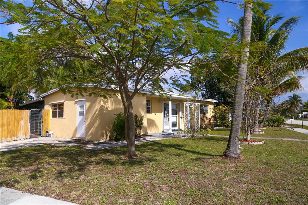 Large corner lot with fenced in shady back yard. Mango, Avocado and Coconut trees. Close to schools, hospital, beach, shopping and dining. This house has possibilities but needs some TLC.