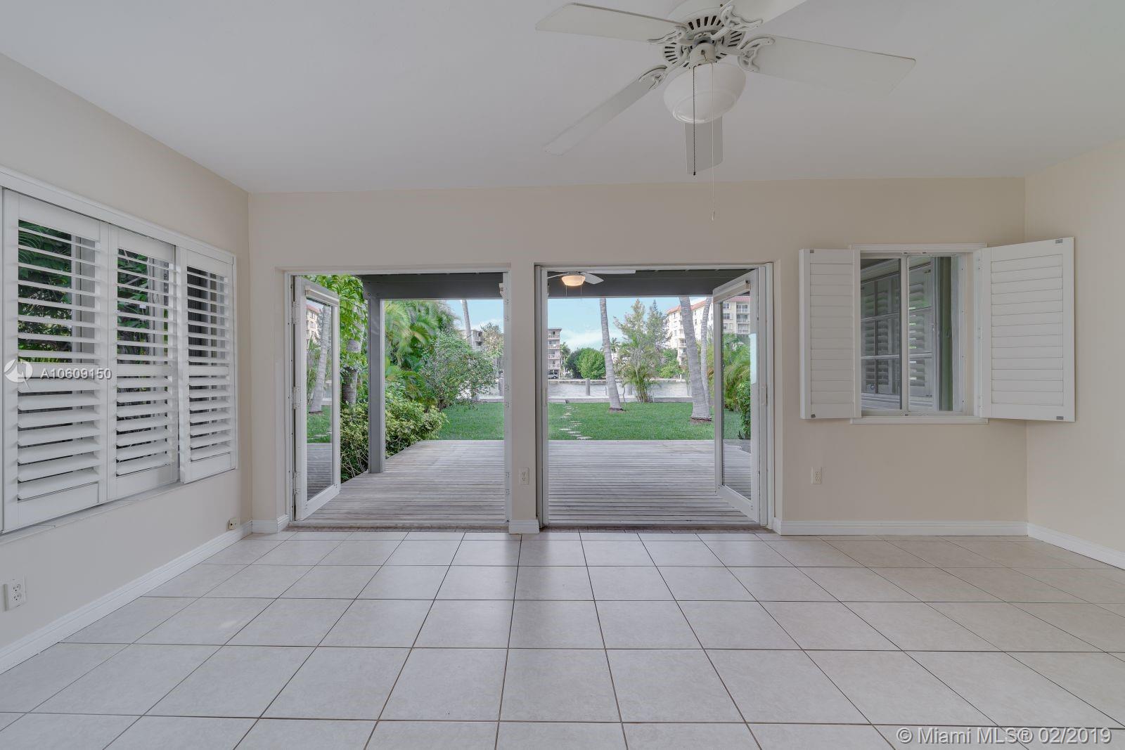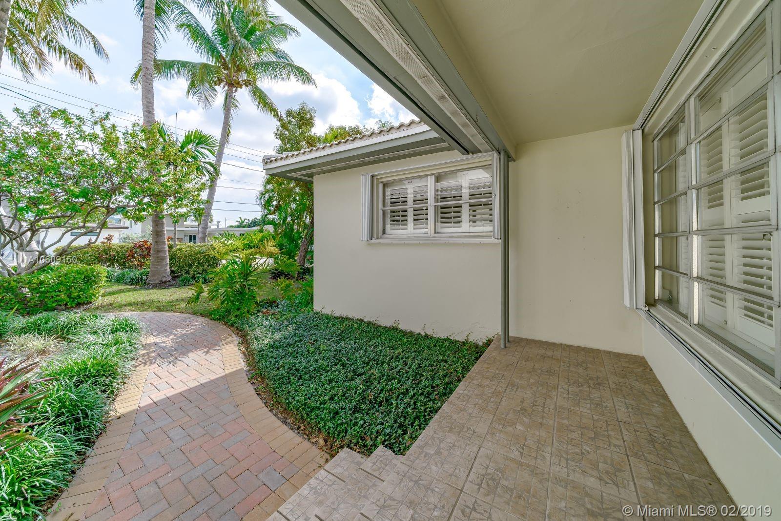 Perfect breeze swept beach house in coveted community. This home on the Indian Creek waterway with no bridges to bay, has a new 2017 seawall and dock. Home is in excellent condition with all tile floors, central vac system and garage. Short stroll to Ocean and new beachfront Community Center exclusively for residents offering library, Yoga, Pilates and much more. Waterfront children's sports park, A+ rated schools. Walk to houses of worship and world renowned Bal Harbour Shops. A perfect place to build your dream home or enjoy the sunsets in lovely existing home.