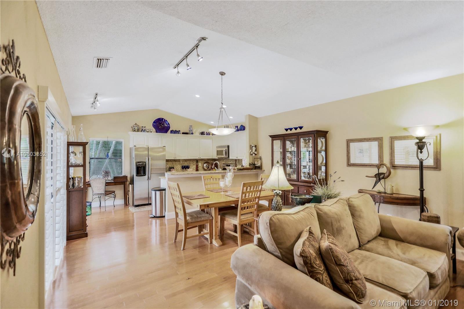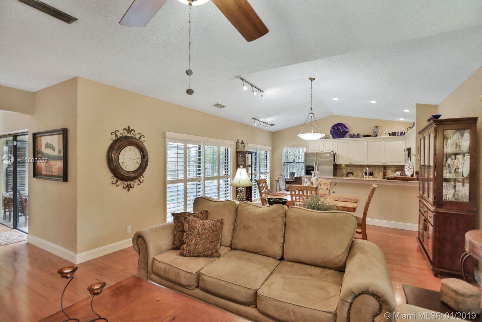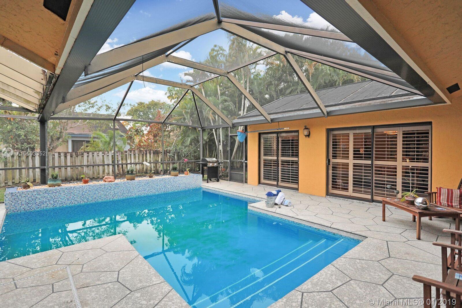 Beautiful pool home in Coral Springs. This home features pool views from almost every room. Plantation shutters in the kitchen, dining room, master bedroom and master bath. There is also a wood burning fireplace in the formal living room. This 3/2 also has a den that can be used as a home office. Six sets of glass doors allow for great natural light. Sky lights in the living room also add more natural light. There is a wet bar with wine refrigerator in the living room. A great home for entertaining! Granite counter tops along with Stainless Steel appliances. Pool was resurfaced in March/April of 2018. New stove/oven in June 2018. This very open floor plan has to be seen!