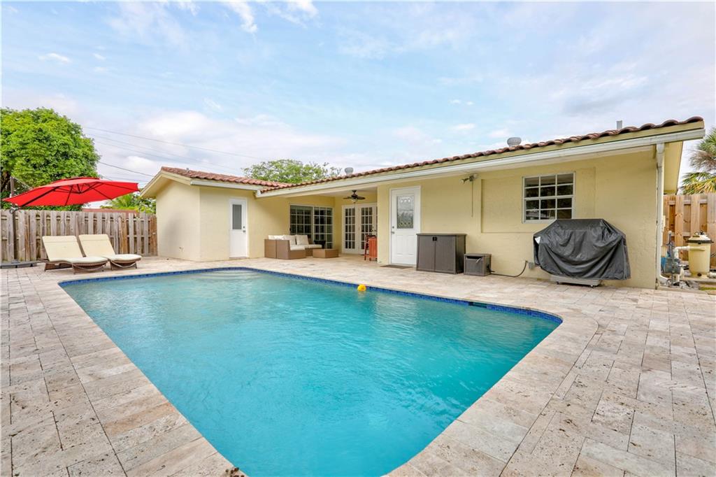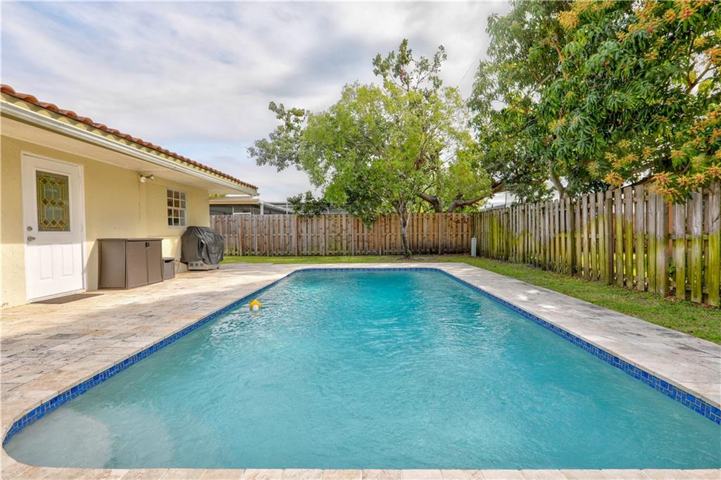 Beautiful fully remodeled 3/2 home in Sunrise Golf Village! Very spacious open floor plan, new wood like tiles through-out the entire house with large baseboards, updated large eat in kitchen with granite counter-tops, real wood cabinets, all stainless steel appliances, dimming high hat lighting, all lighting replaced through-out the house. Alarm system set up, garage door opener with remote, new gas water heater replaced in 2017. One of the larger lots in the community, room for a boat! House newly painted in 2015! Huge backyard, great for entertaining with re-diamond bright pool in 2016 and remodeled back patio with extended Travertine tiles.