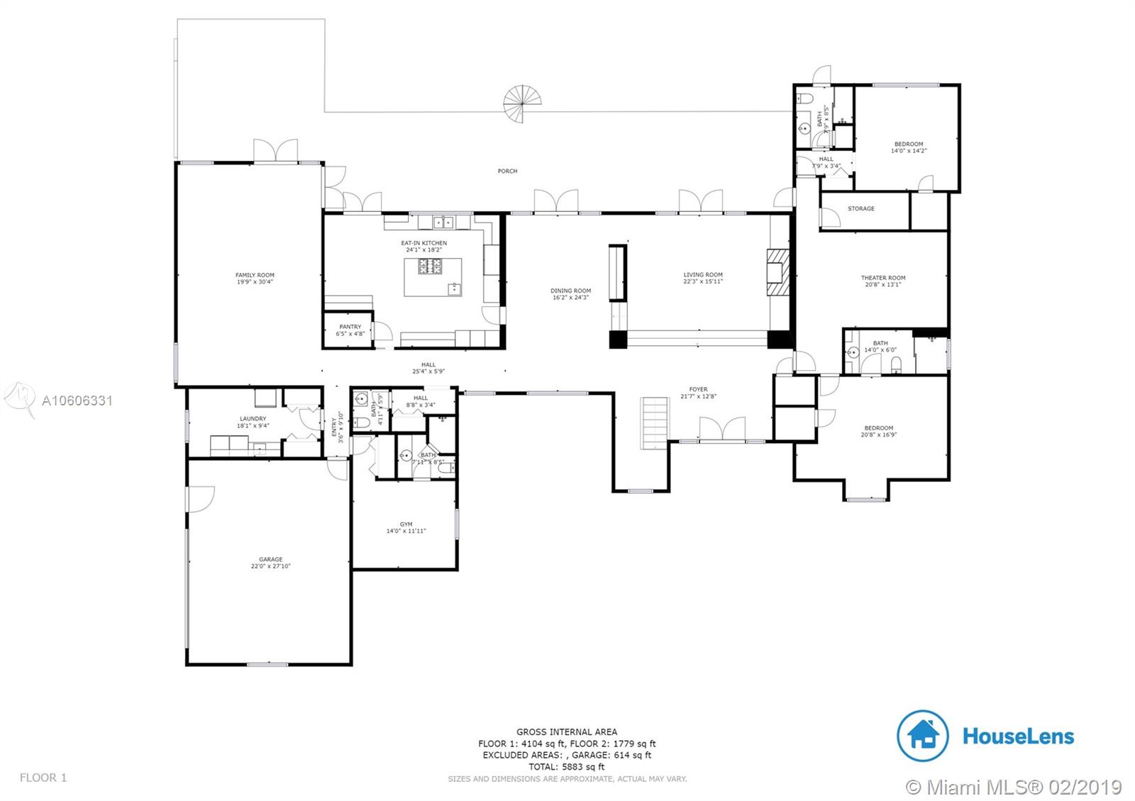 Welcome home to North Pinecrest! Valuable location on quiet street. Pinecrest schools and parks. Custom built in 1990, first time on the market. Walk into the foyer and formal living room, and view the patio, pool and yard through the incredible two-story wall of windows. Room for tennis court on 1+ acre. Spacious home offers 6,236 sq. ft. living area. 4 en-suite bedrooms (theater could be 5th) including a maid's/guest room. Private master suite with sitting area, large master bath, 2 walk-in closets, whirlpool bath. 8' door height throughout home. Sunny kitchen with huge island and breakfast nook. Special features include custom marble fireplace, bright office or library w/ 1/2 bath and private terrace, great family room w/ wet bar, 3-car garage, and 8-seat theater room. A must-see!