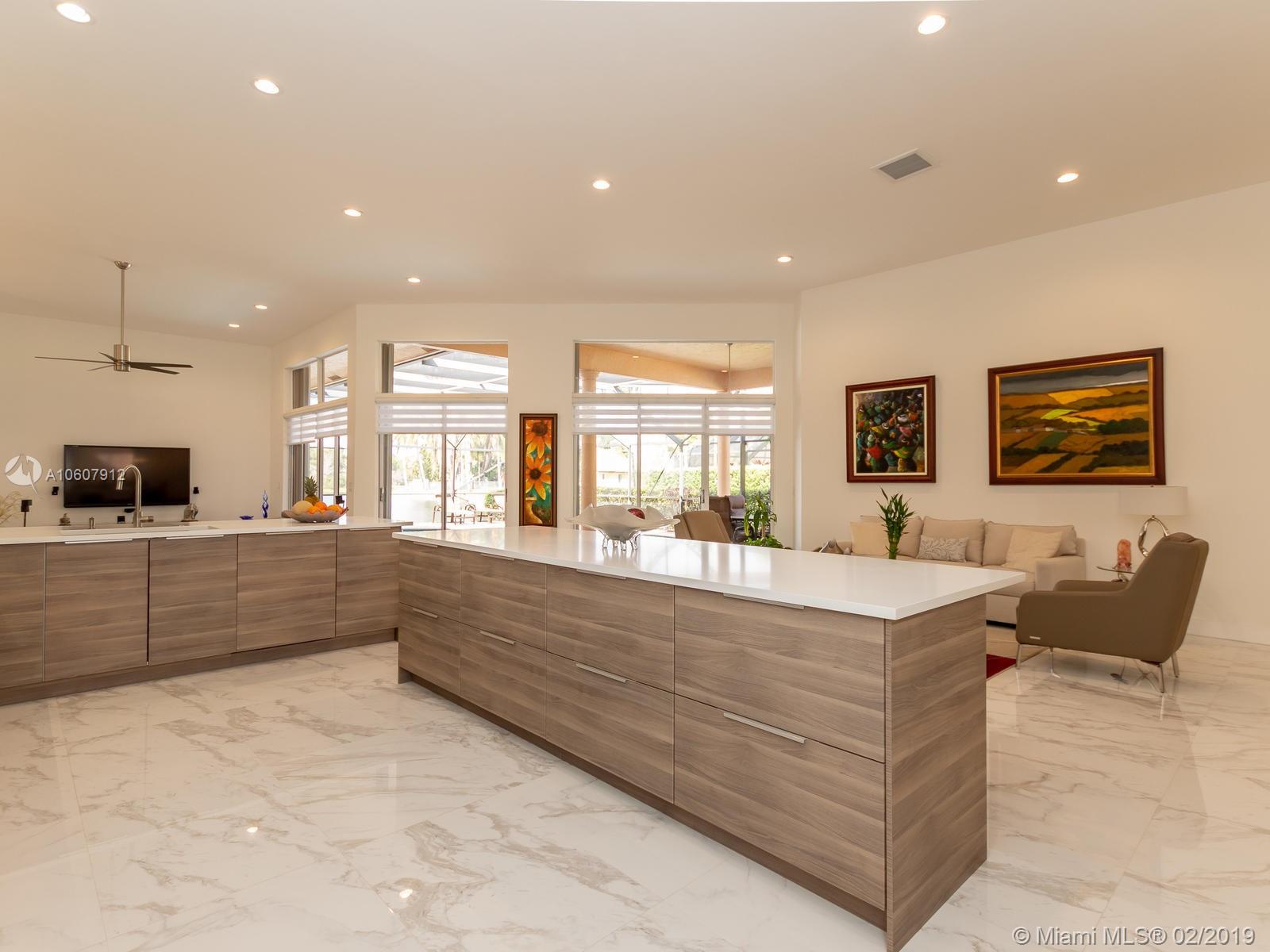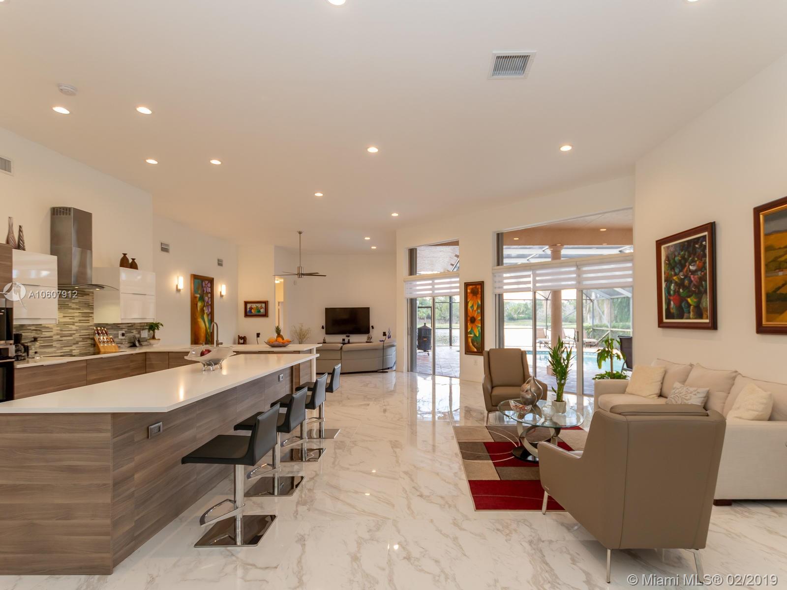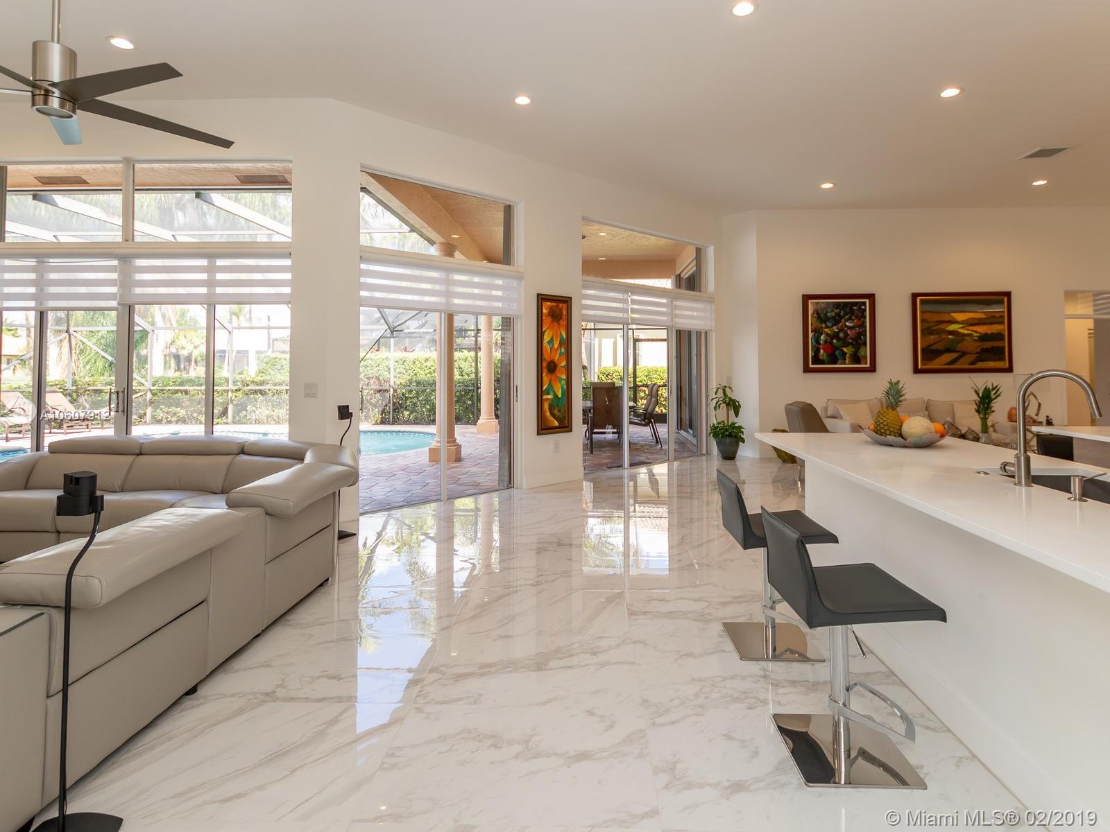 COMPLETELY RENOVATED W/MODERN FLARE! This home is located in prestigious Weston Hills CC*it boosts over 3000 SF of luxury living! Very large porcelain tile floors throughout L/A, hardwood floors in bedrooms*Kitchen has 2 tone cabinets, all new appliances, induction cooktop, quartz countertops, huge island and is completely open to living area*All bathrooms have been remodeled*screened in pool is hurricane coded*roof 2015*exterior recently painted*all new window treatments*all LED hi-hats*smooth ceilings thru-out*very private and serene lake views! This home will sell fast!