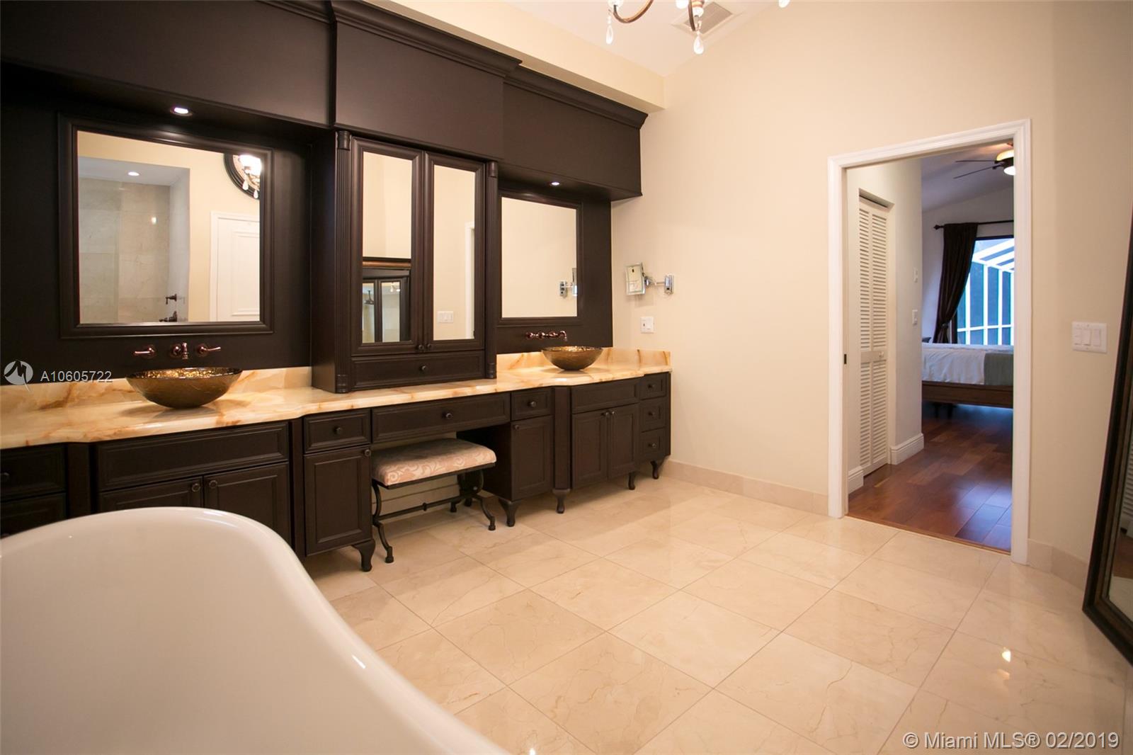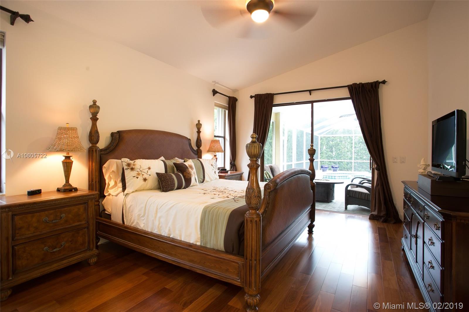 Move in Ready! Set in Weston Hills Country Club, this stunning 4 bedroom 3 bathroom home features a sparkling screened pool, raised spa and paver patio, perfect for enjoying Florida outdoor living! The yard is fully fenced and lushly landscaped for complete privacy! Updated kitchen boasts detailed custom wood cabinets, stainless steel appliances and unique granite counter tops. Tastefully remodeled master bathroom has custom wood cabinets, lighted onyx counters, slipper tub marble tile and flooring. Large neutral tile in living areas and wood flooring in bedrooms. Interior is freshly painted. Impact front windows, accordion shutters and new garage door for hurricane protection. Furnishings available!