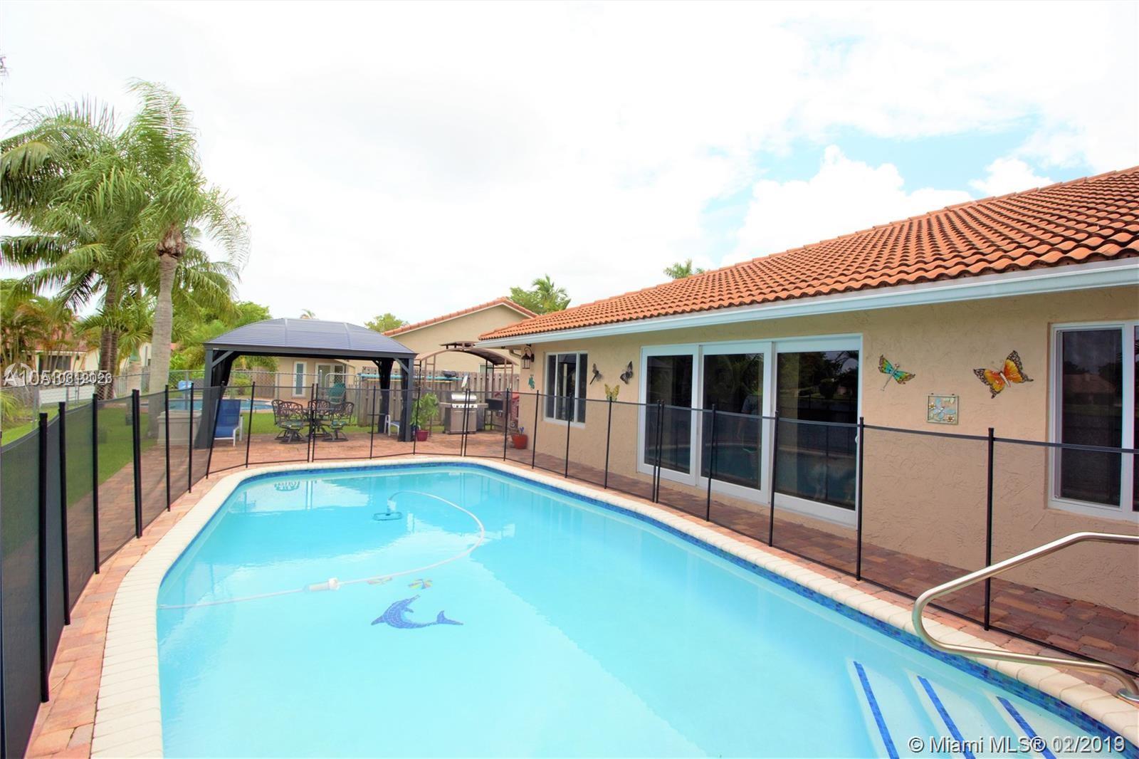 OWN THIS MAGNIFICENT WATERFRONT HOME IN THE DESIRABLE JACARANDA LAKES! THIS GEM SITS IN A PRIME LOCATION ON THE LAKE AND CUL DE SAC. IT IS METICULOUSLY MANICURED AND MAINTAINED. THIS FABULOUS HOME IS PERFECT FOR ENTERTAINING OFFERING 4 BEDROOMS/2 BATHS, NEWER KITCHEN WITH GRANITE COUNTER-TOPS, CUSTOM WOOD CABINETS, DOUBLE OVEN, WINE COOLER, NEWER A/C, WINDOW TREATMENTS, POP CORN CEILINGS REMOVED, 100% HURRICANE PROTECTED WITH IMPACT DOORS/WINDOWS, AND ACCORDION SHUTTERS. HAVE FUN BY THE HEATED POOL ( RECENTLY RESURFACED), GET SOME SHADE BY THE OVER SIZED CANOPY, OR COOK UP SOME FOOD BY THE GRILL GAZEBO. THIS WATERFRONT JEWEL IS MOVE IN READY AND WON'T LAST LONG!