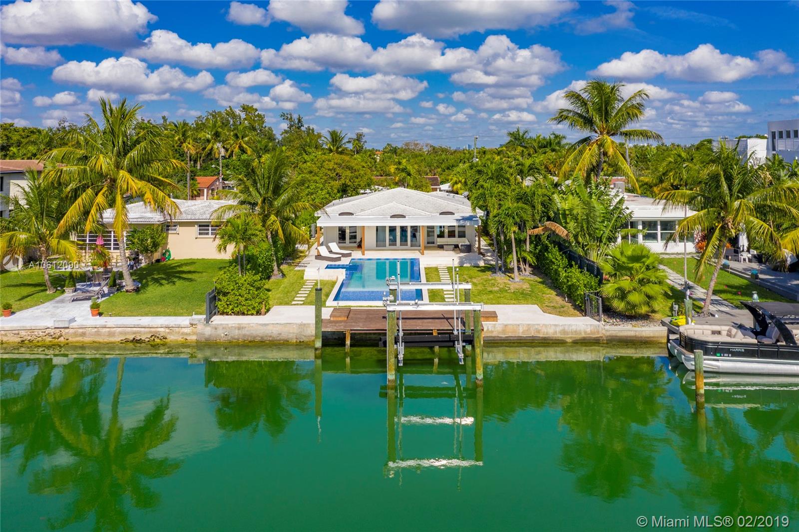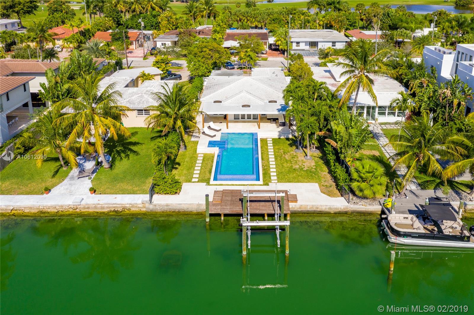 Captivating 3 bedroom 3.5 bathroom waterfront home sitting on 10,200 sq foot lot located in the highly sought-after Normandy Golf Club! Sunlight pours in the living room through beautiful French doors welcoming you inside. Renovated state of the art Kitchen with stainless steel appliances and tasteful finishes including built-in wine cooler and wall range hood. Home features infinity pool and 60 ft water frontage with dock and easy access to the bay/ocean. This home is in excellent condition turn key ready.