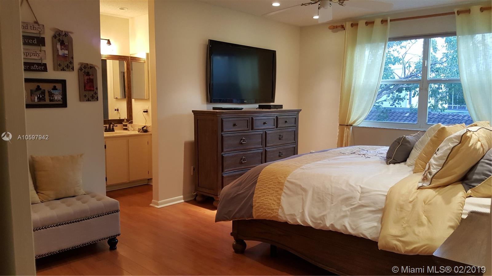 Perfectly turnkey! This is a 4 bed, 2 1/2 bath beautifully updated and impeccable home. You have a welcoming brick entrance with lovely landscaping. The open-concept kitchen has been recently updated with stunning wood cabinetry, granite countertops and SS appliances. The entire house has recessed lighting, an alarm system, hurricane impact windows, laminate wood floors throughout, and updated bathrooms. It also features French doors leading to a spacious back yard with a pool. The exterior has been recently painted and has a new roof. This beautiful home is located in a Gated community, close to shopping, highways, hospital and CB Smith park. It won't last long!