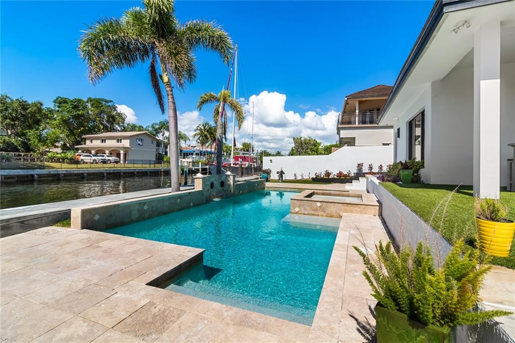 Rare Point Lot w/ Stunning Intracoastal Views & Sunrises. Enjoy The Feeling Of Being On Vacation Every Day In The Comfort Of Your Home. This Rare Luxury Property Maximizes The Best Florida Has To Offer, w/ Custom Open Floor Plan, His & Hers Master Bath Accompanied By Custom Duo His & Her Walk In Closets, High-End Hand Carved Wood, Travertine & Marble Flooring, Counter Tops, Custom Molding w/ 9 ½ Ft. Walls Throughout. 5 BD, 4 ½ BA, High-End Kitchen Cabinetry, Gas Stove & Appliances, 3 AC Zones, Jacuzzi Bath, Outdoor Pool, Lanai & Spa. 210 Ft. Just Completed NEW Regulation Seawall. NEW Roof, Top Of The Line Custom Designer Tile & Completely Renovated Exterior. Approved Plans For 180 Ft Wrap Around Dock & Boat Lift Available. With The Seawall Completed, This Unique Point Lot Won’t Last.