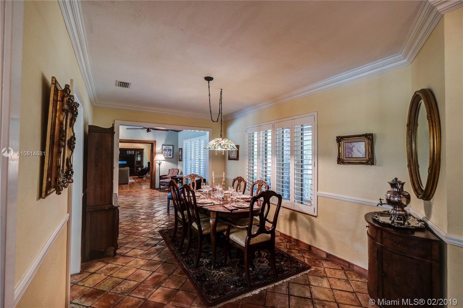 This large (approx 4000 sqft) well updated Pinecrest jewel has a fourth bedroom and bath separated from the other bedrooms perfect for an office, in-laws, teenager, or guests. Tastefully added to and improved by long-term owners this home features high tongue and groove wood ceilings, an Old Chicago brick fireplace and pool/patio, wood floors, large bedrooms and baths w/zoned water heaters and CAH, 3-car garage, and sits up high on a beautiful no traffic street with lots of privacy and lovely landscaping. Impact glass French doors across back of house.