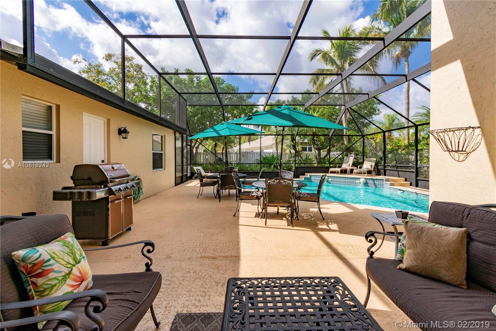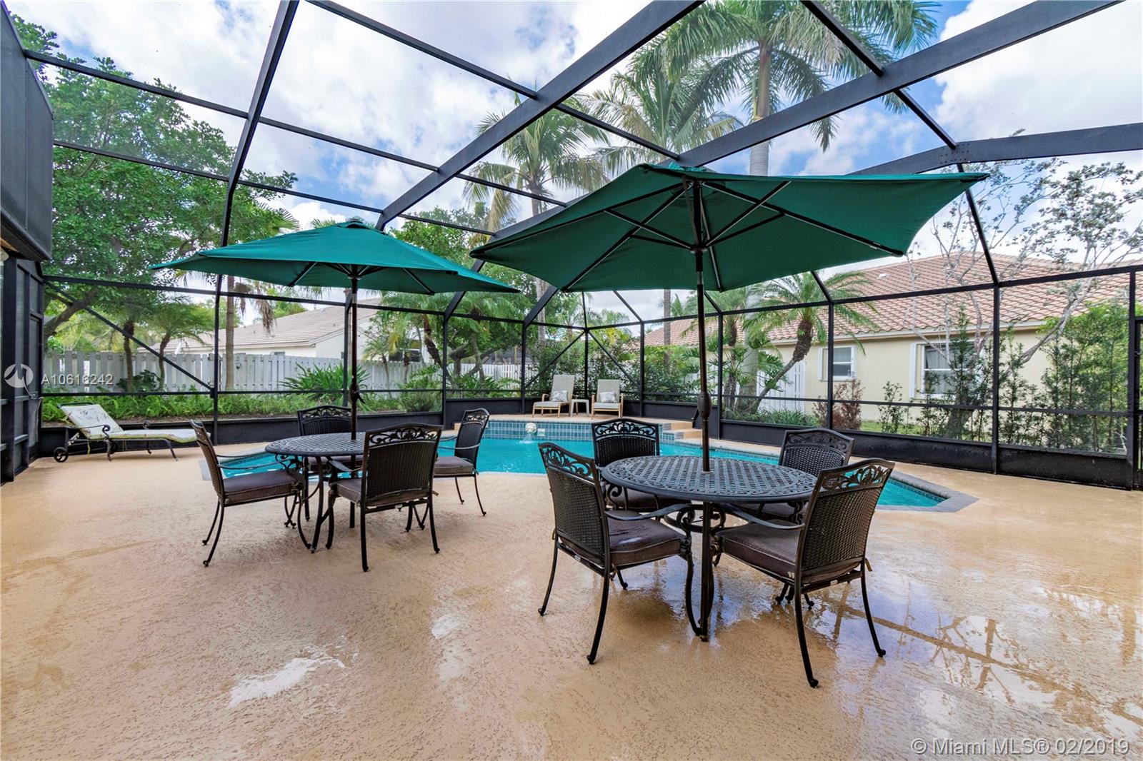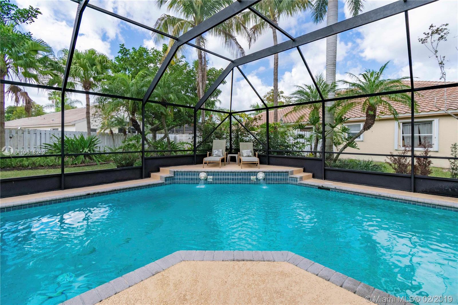 There is No Substitute for Style !! An tropical pool oasis home located at The Lakes of Weston. A marvelous outdoor ambiance with exquisite landscaping, a towering pool screen enclosure, extensive pool deck area to fill your guest for super parties and get togethers, This property is situated on large rare lot size of 11,300 Sqft at beginning of cul-de-sac, This beautiful 1 story split floor plan is ideal that works for all families, family/tv room, living/dining room combination area, nook area, office room, 12' ceilings, Updated kitchen w/vast cabinetry, wood flooring in master & family room, zoned for A+ schools: Eagle Point Elementary, Tequesta Trace Middle, Cypress Bay High School. Gated community, Easy access to highways for commuting, nearby parks and shopping. Look No Further.