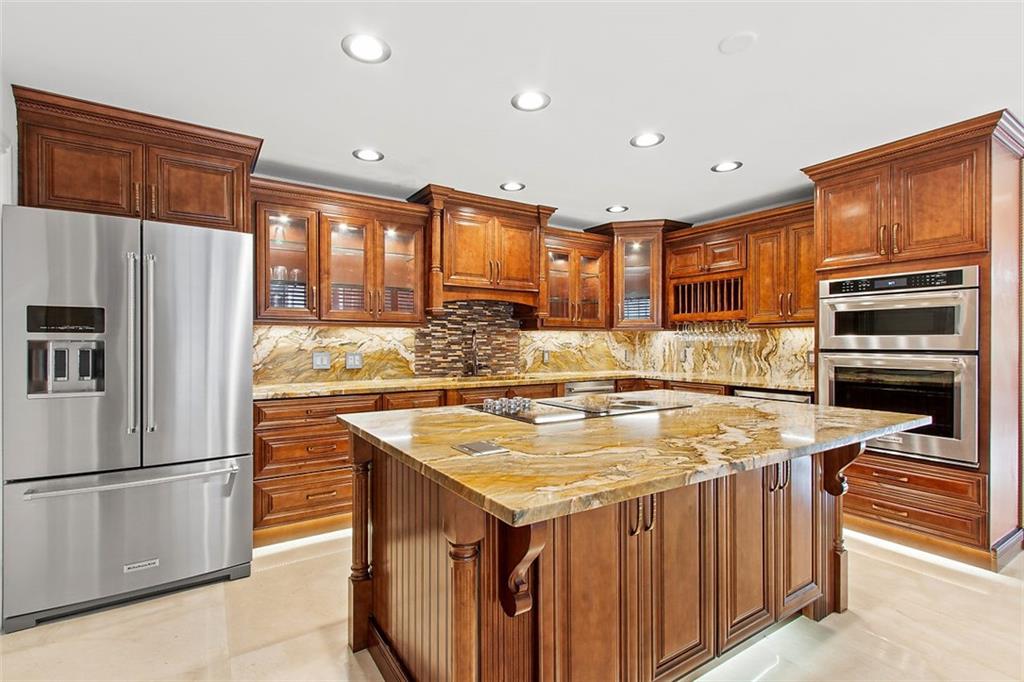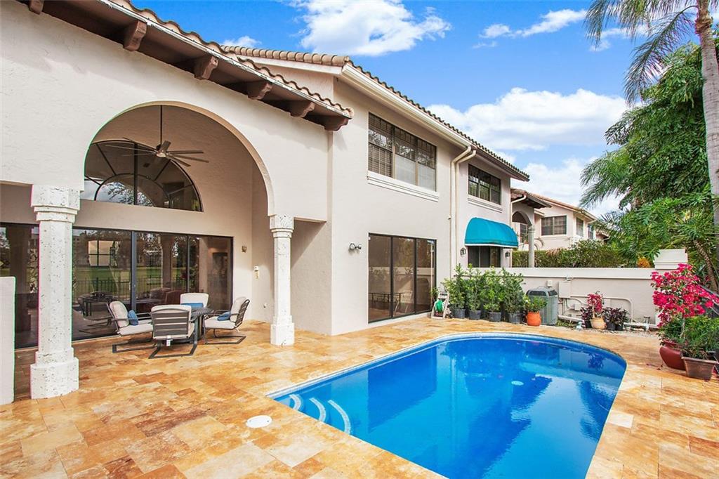 Spectacular renovated home in El Dorado at Boca Pointe! Come see the bright, wide open living space & gorgeous finishes - limestone, marble & engineered wood floors, updated bathrooms & SO much more! The kitchen is outstanding - completely redone with rich wood cabinets, quartzite counters, undermount lighting & new appliances. The stainless steel & glass banister is a work of art! Enjoy the private courtyard entrance & amazing pool area & golf course view! There are four bedrooms with en suite baths - includes a 1-bedroom, 1-bath guest suite. The south-facing patio allows for lots of natural light! New travertine patio & resurfaced pool. Boca Pointe is gated, beautifully maintained & in a GREAT location! Club membership is not required. Excellent schools!