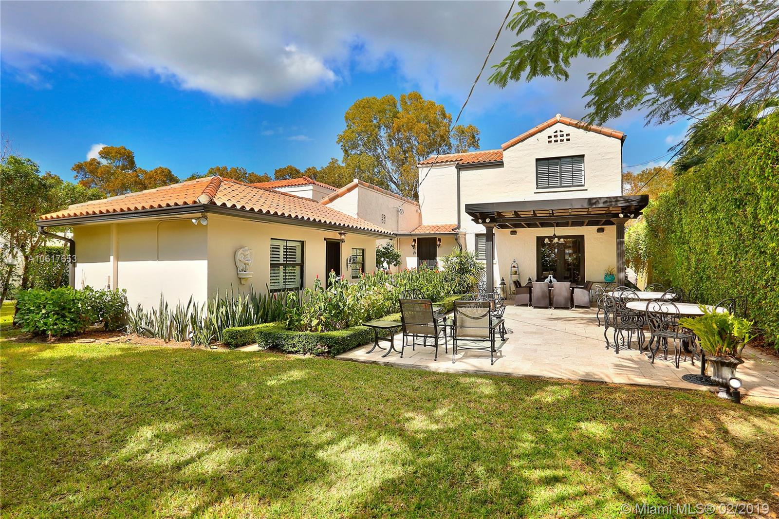 Built in 1924, this Old Spanish in the heart of Coral Gables maintains charming details of yore but has been upgraded w/ all of the amenities that a modern buyer demands, making it a perfect blend of old & new! From the Chicago brick front walk enter the foyer that leads to the frml liv rm w/ fireplace to the spacious frml din rm, both perfect for celebrations! Eat-in kitchen features a fab copper hood, gas Wolf range, & 2-tone custom cabinetry. 2nd flr master has a large walk-in closet & sophisticated remodeled bath. 2 add’l BRs, incl an in-laws’ suite, both have private bathrooms. The porch feels like an outside room & deep lot has room for pool. Impact glass windows & drs, plantation shutters, wood & marble flrs, bonus rm & fine details in a prime location make this a perfect home!