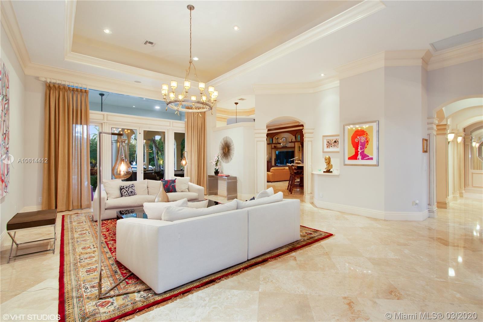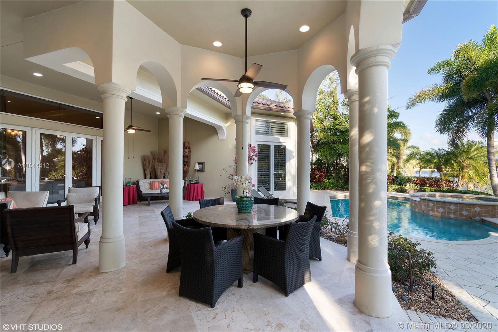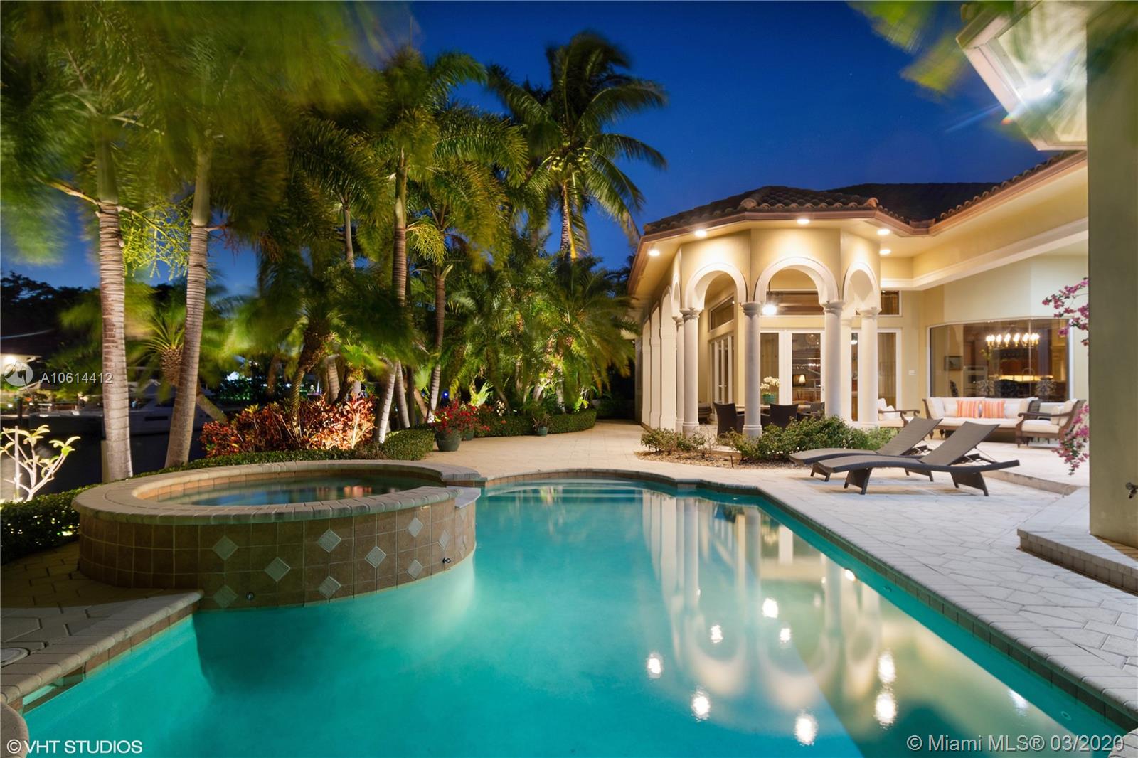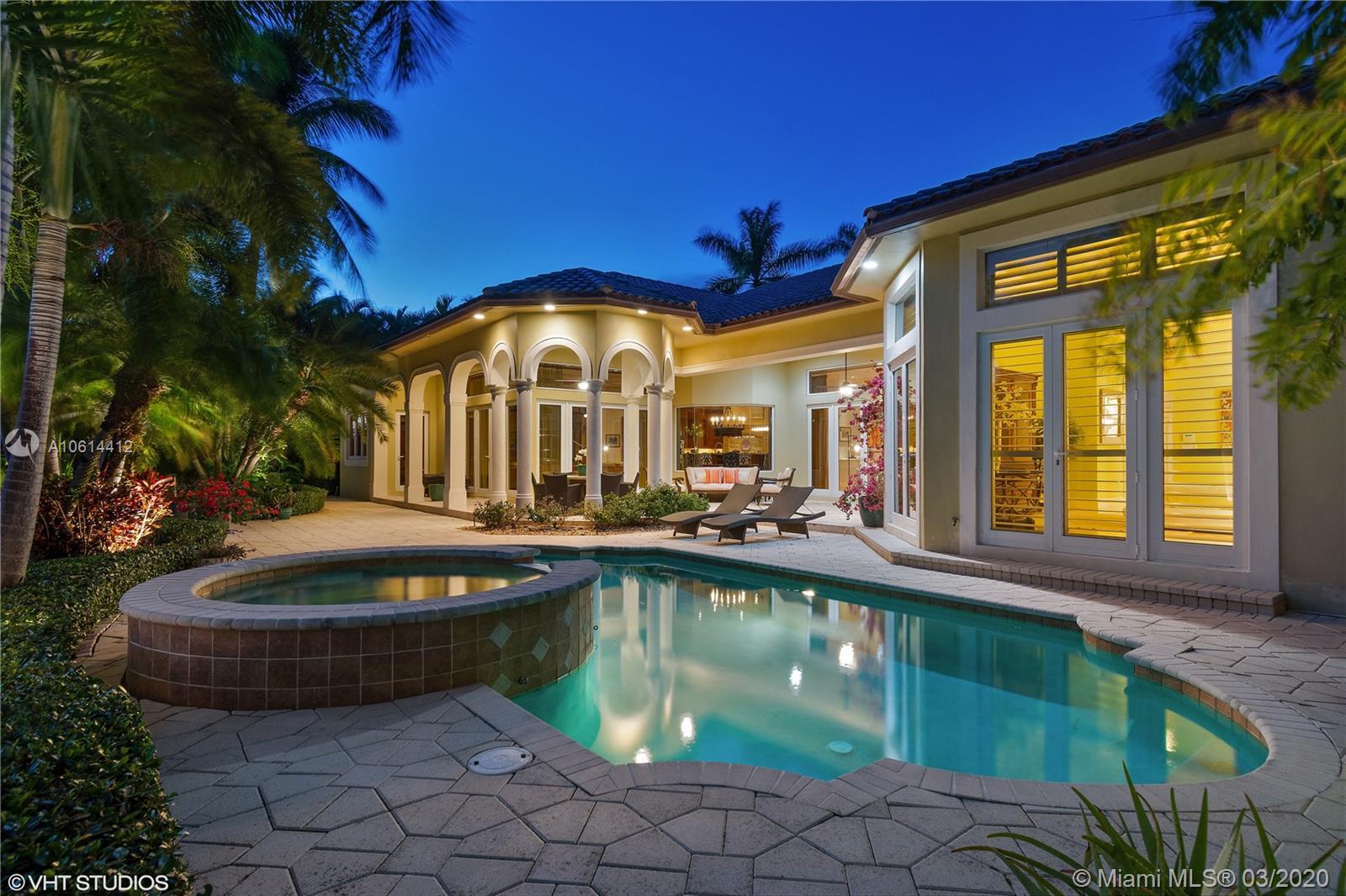Beautiful home with perfect floor plan. Rare one-story on such a large lot. Manicured hedges, Royal and Date palms... Built to highest quality, emanating Palm Beach elegance and warmth. Built and designer decorated with attention to detail. 4 Bdrms plus handsome office. Built in 2002. Walls of Impact Glass invite you to the beautiful outdoor living area, extensive covered areas, pool w/heated spa, canal is 120' with ICW views from backyard. Master suite and office on left side and 3-guest bedrooms to right of the home. 13' and 15' ceilings, finest quality finishes, millwork, crown molding and craftsmanship. Saturnia marble floors throughout, propane gas, Thermador appliances. 100x125 lot. Desirable South exposure. Dock accommodates up to 80' boat. Gently lived in.